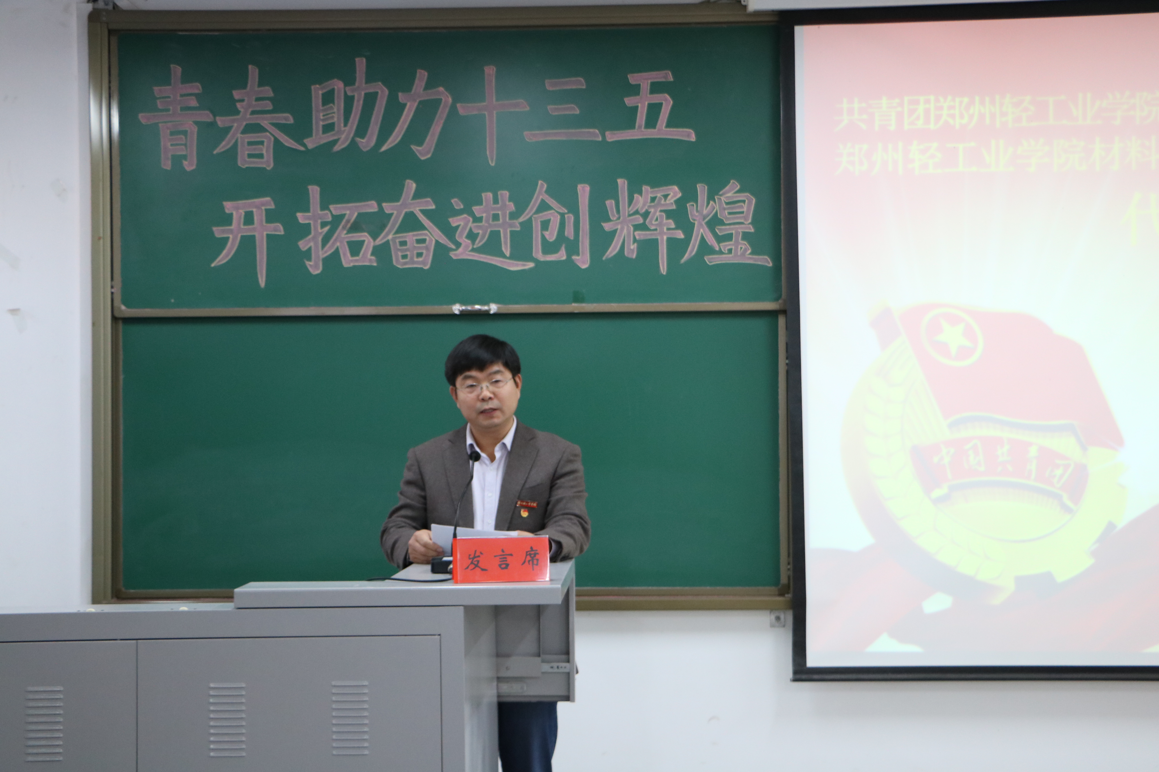 学院分团委书记朱广正老师代表共青团郑州轻工业学院材料与化学工程学院分委员会作工作报告。他全面总结学院分团委近年来的工作和取得的成绩,并分析了工作中存在的不足和今后努力的方向,对未来的发展提出了几点规划:第一,积极稳妥推进改革,强化自身建设稳妥;第二,加强青年思想引领,做好价值引导;第三,围绕全面从严治团,抓好学院共青团基层建设。最后,号召全体团员青年,要坚持校党委、校团委的正确领导,在学院党政班子的带领下,在院分团委团结奋进的引领下,开拓创新,勤奋工作,为推进学院又好又快发展,再创佳绩,为郑州轻工业学院的美好明天贡献力量!