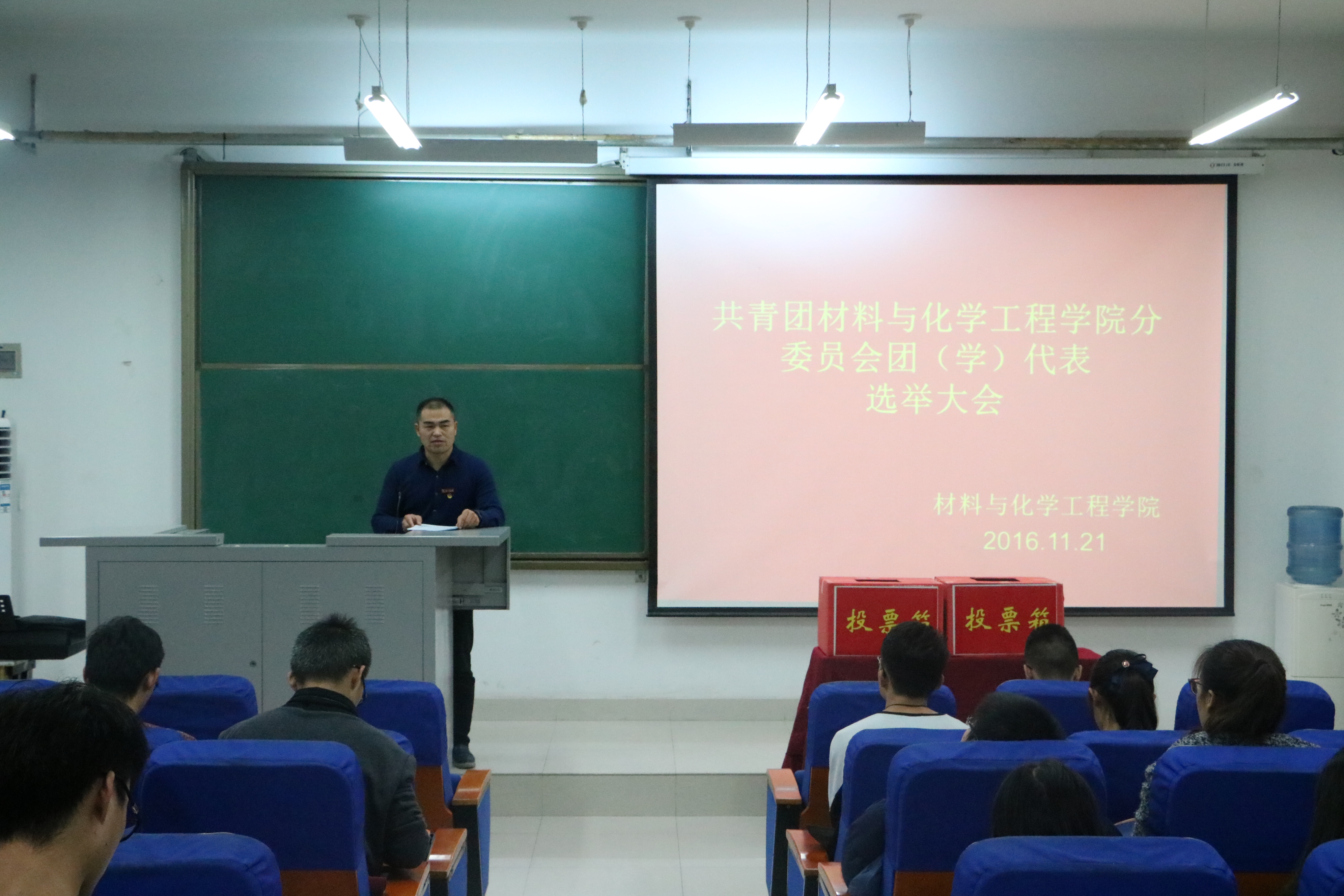 为了广泛宣传团(学)代会的重大意义,营造积极活跃的参与氛围,引导团员青年正确行使民主权利,履行义务,在校团委的统一部署下,11月20日中午12:30,共青团材料与化学工程学院分委员会在化工楼218召开团(学)代表选举大会,58名团(学)代表参加了本次大会,会议由分团委书记朱广正老师主持。