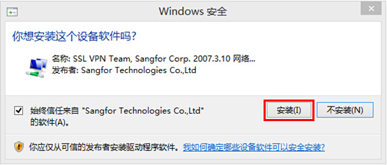 2、初次登录SSLVPN会提示安装浏览器控件,按提示进行安装: