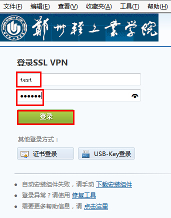 1、输入管理员提供的SSLVPN账号密码,点击“登录”: