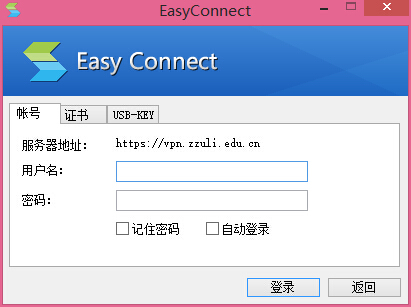 2、直接双击该图标登录SSLVPN,输入https://vpn.zzuli.edu.cn,单击“连接”: