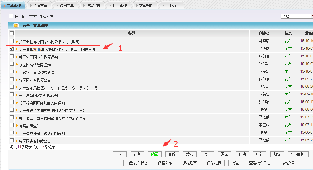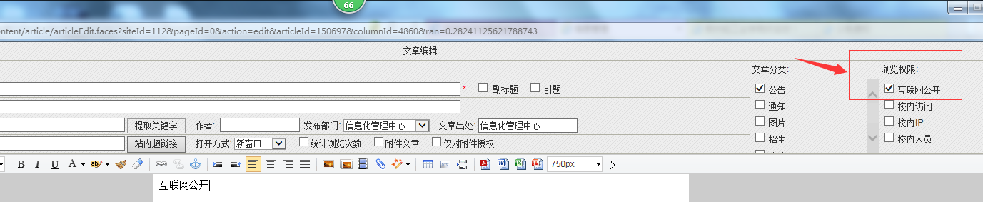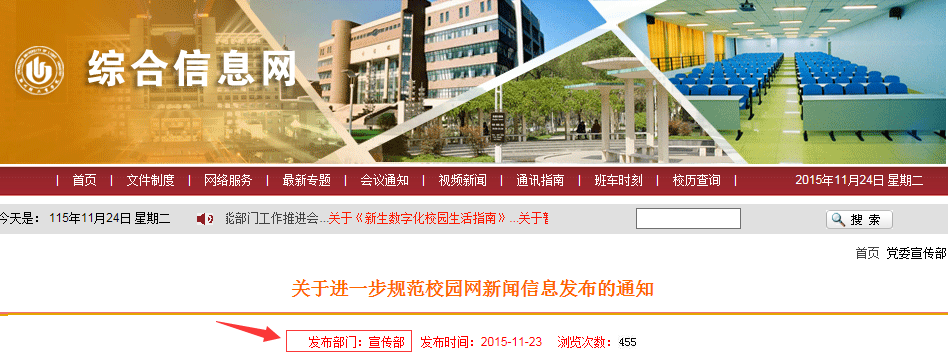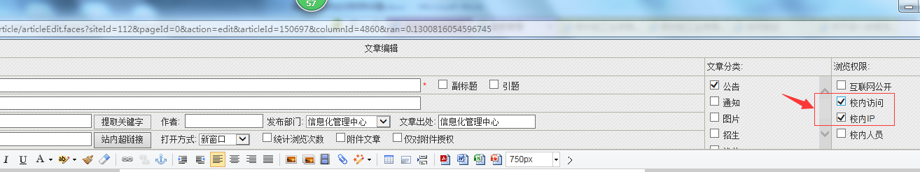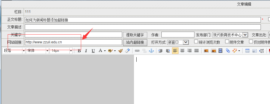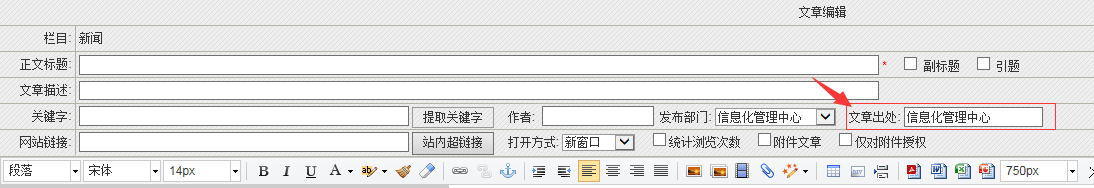 1、在信息编辑 “文章出处”里填写部门名称,例如“信息化管理中心”