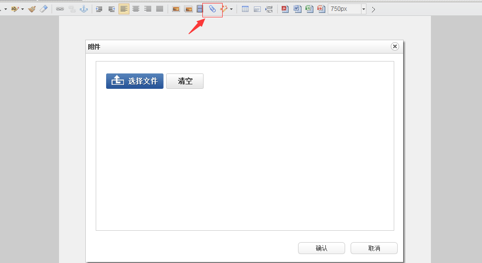点击工具栏“附件”按钮,选择文件,附件大小不得超过300M。