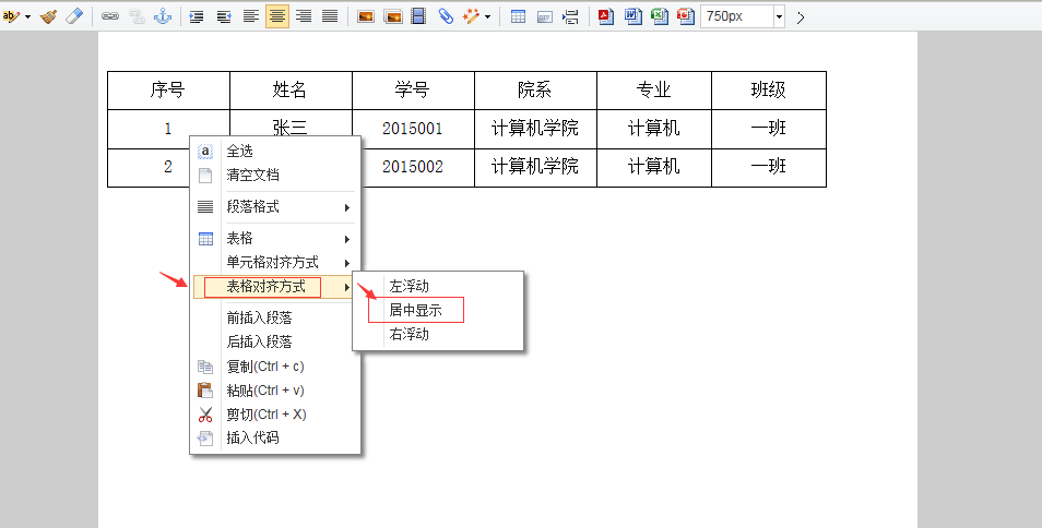 右击表格中任意位置,选择“表格对齐方式”——“居中显示”