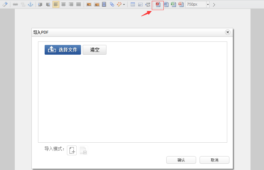 点击“导入PDF”按钮,选择文件。为保证内容显示不失真、不变形,建议Word、Excel、PPT先转换为PDF文件,再导入。