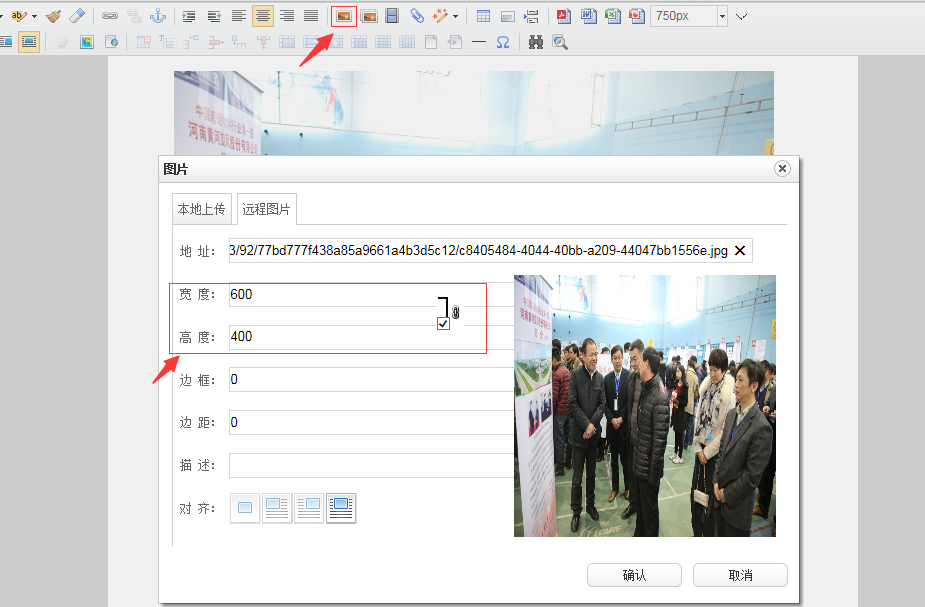 选中图片——点击工具栏“图片”——设置宽度、高度。图片格式为jpg,大小不得超过30M。