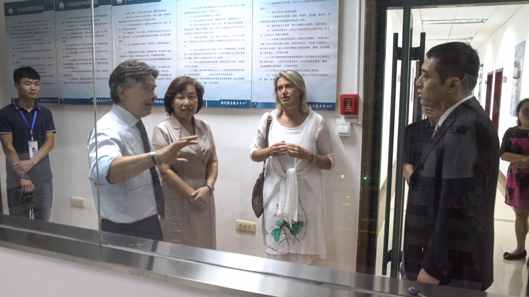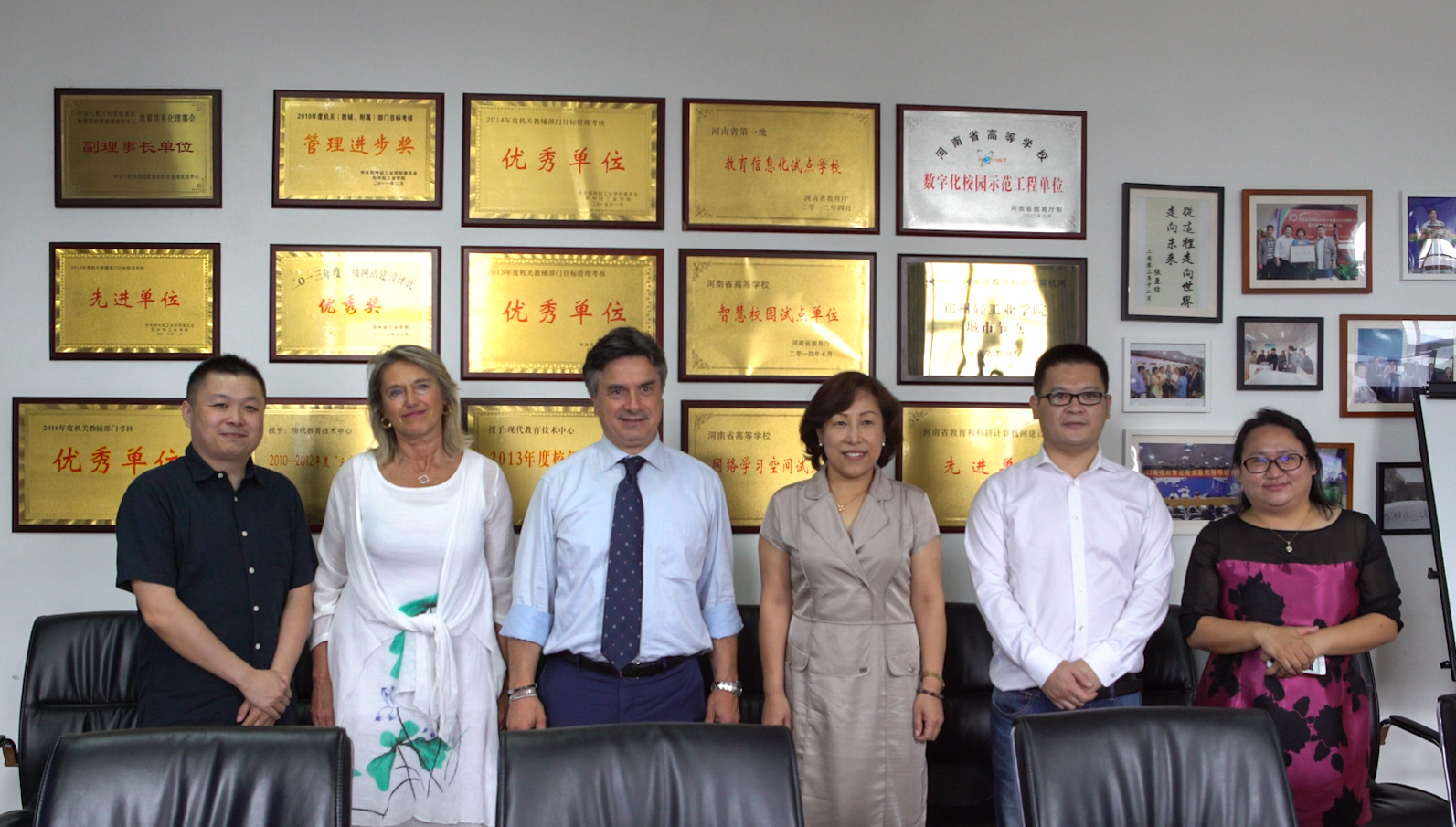 2017年7月1日,我校友好合作学校意大利卡梅里诺大学校长Flavio Corradini一行三人在我校国际交流合作处谈红玲处长等人员陪同下,到信息化管理中心进行工作交流。