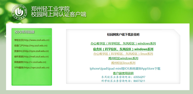 ①通过终端网线接入信息面板接入点,登录http://user.zzuli.edu.cn,下载和运营商对接的认证客户端,界面如图6所示: