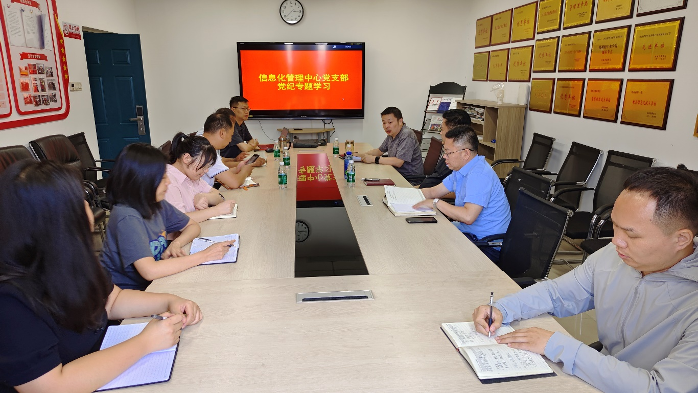 6月27日下午,机关党委信息化管理中心党支部在三教楼516会议室召开了党纪教育专题学习。支部党员参加会议,会议由支部书记程源主持。
