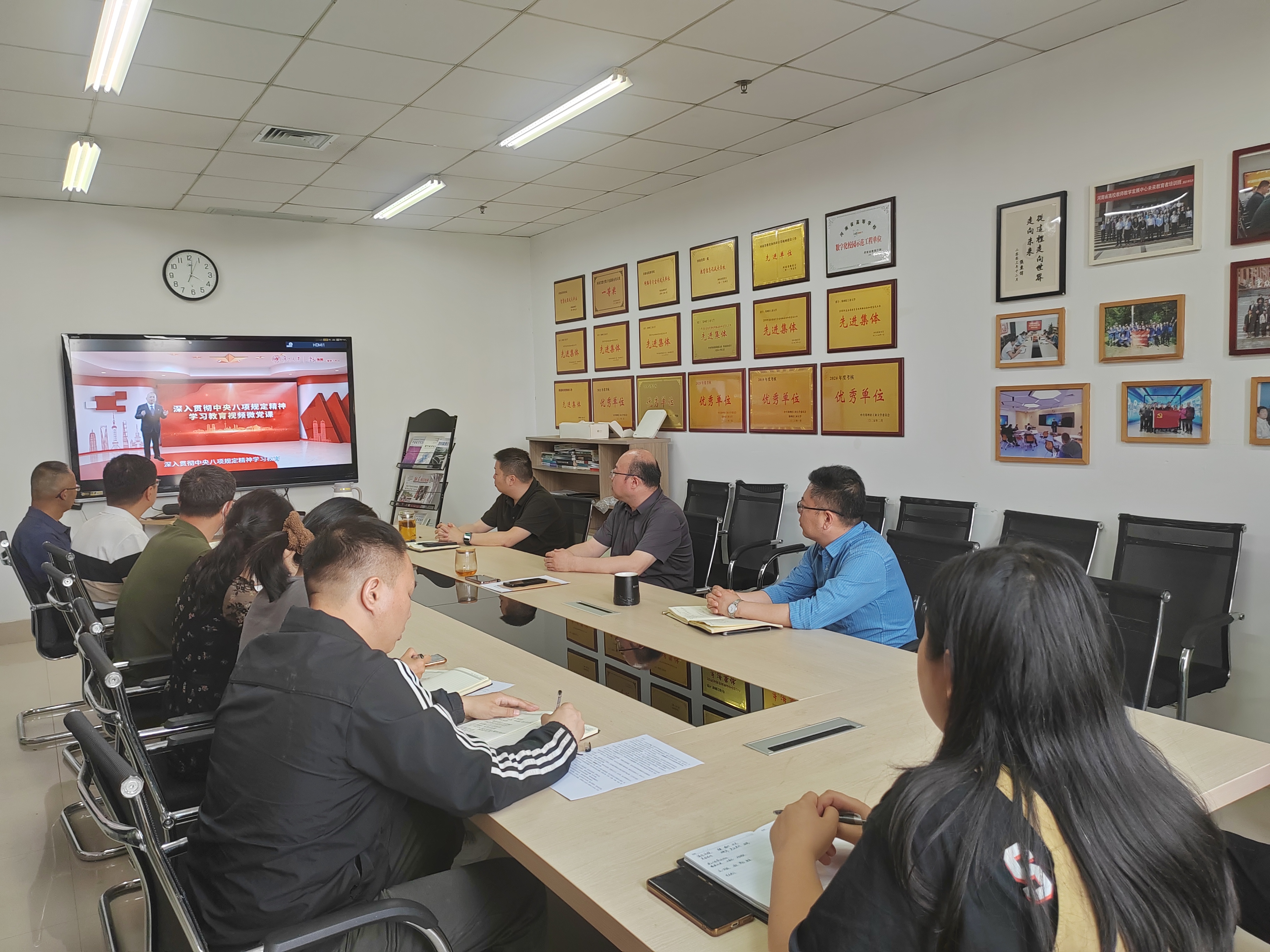 各部门通报了近期完成的主要工作,内容包括:1.完成学校大模型技术相关工作河南省高等教育数字化转型成果的申报;完成联通云智算平台部署并试用;升级了校园百事通系统;2.完成全国教育信息化工作管理信息系统2025年第一季度数据上报工作;3.完成2024年度内控报告中,内控信息系统相关内容的编制并提交财务处;4.完成学校2025年度教育信息化和网络安全工作要点;5.完成全校378间弱电间及设备安全隐患排查,及时处理8号楼弱电间线路温度过高问题,并推动运营商整改;6.完成网站群错敏词库开发、财务绩效自评报告撰写及校办用印流程优化;7.完成科学校区标考考场弱电间线缆堆积问题排查并制定整改计划,统筹整理东风校区弱电间交换机与校网机柜,同步开展教室讲桌用电安全巡检及负载统计工作。8.完成第六届教职工代表大会暨工会会员代表大会会议、2025年度校级教师课堂教学创新大赛活动、第三十九届校田径运动会等活动的录制工作;9.完成第二期人工智能赋能教学线上研修活动,并在智慧教学专题网站、Deepseek-AI 专栏发布 35 篇教育教学资讯信息,上线 17 个各高校 DeepSeek 系列专题公开课视频。