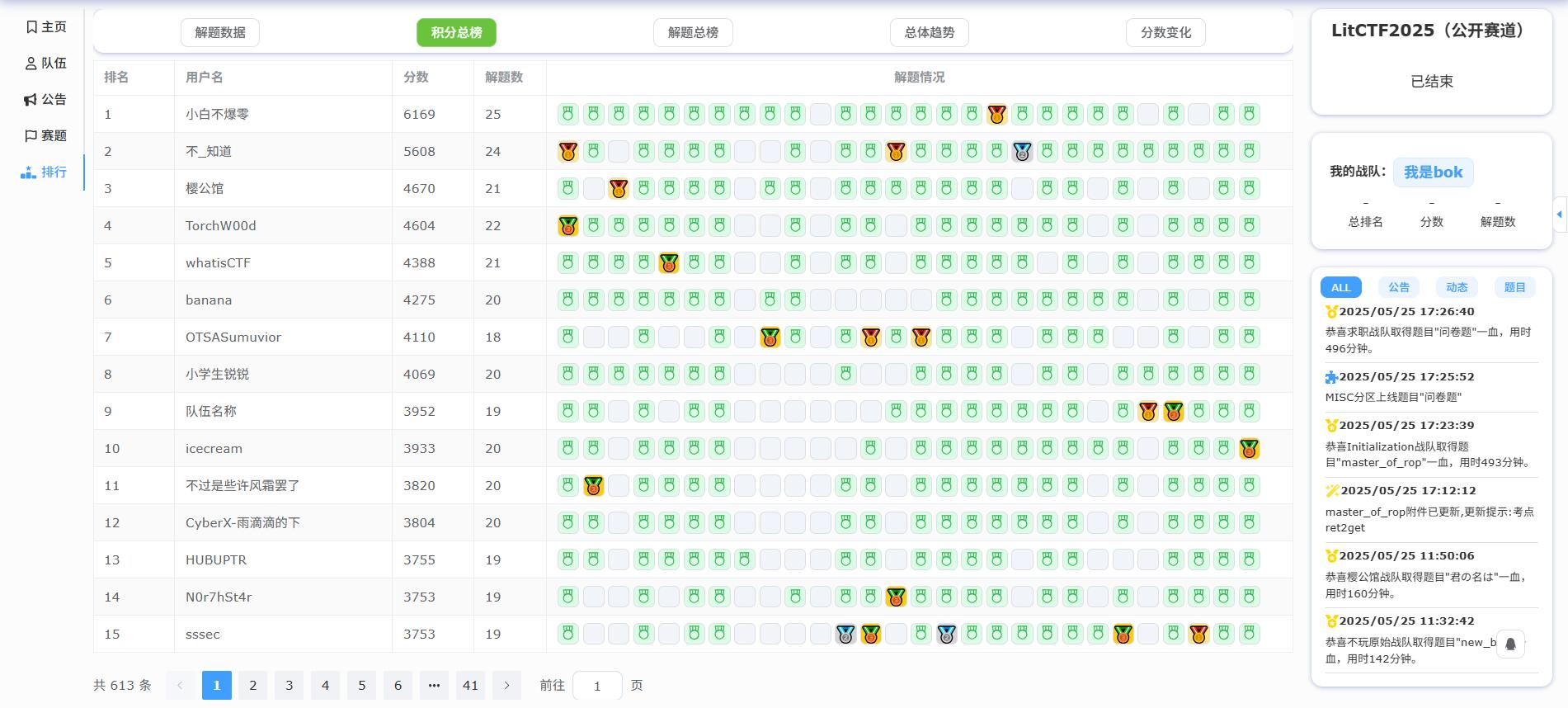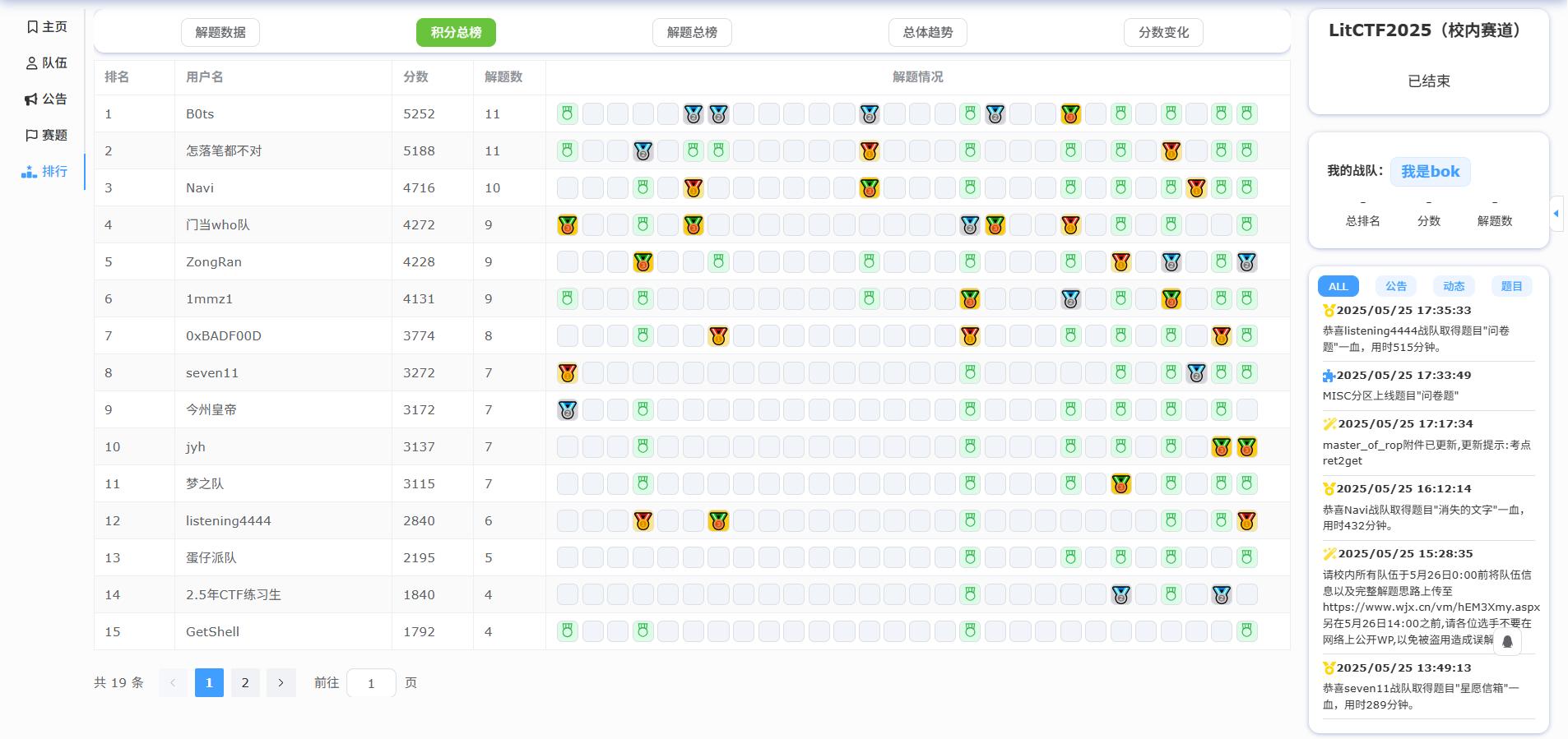 经过一天激烈的比拼,校内赛道中B0ts战队、怎落笔都不对战队、Navi战队等表现突出,成功跻身积分榜前十;校外赛道中,小白不爆零战队、不_知道战队、樱公馆战队等表现优异,同样斩获前十佳绩。