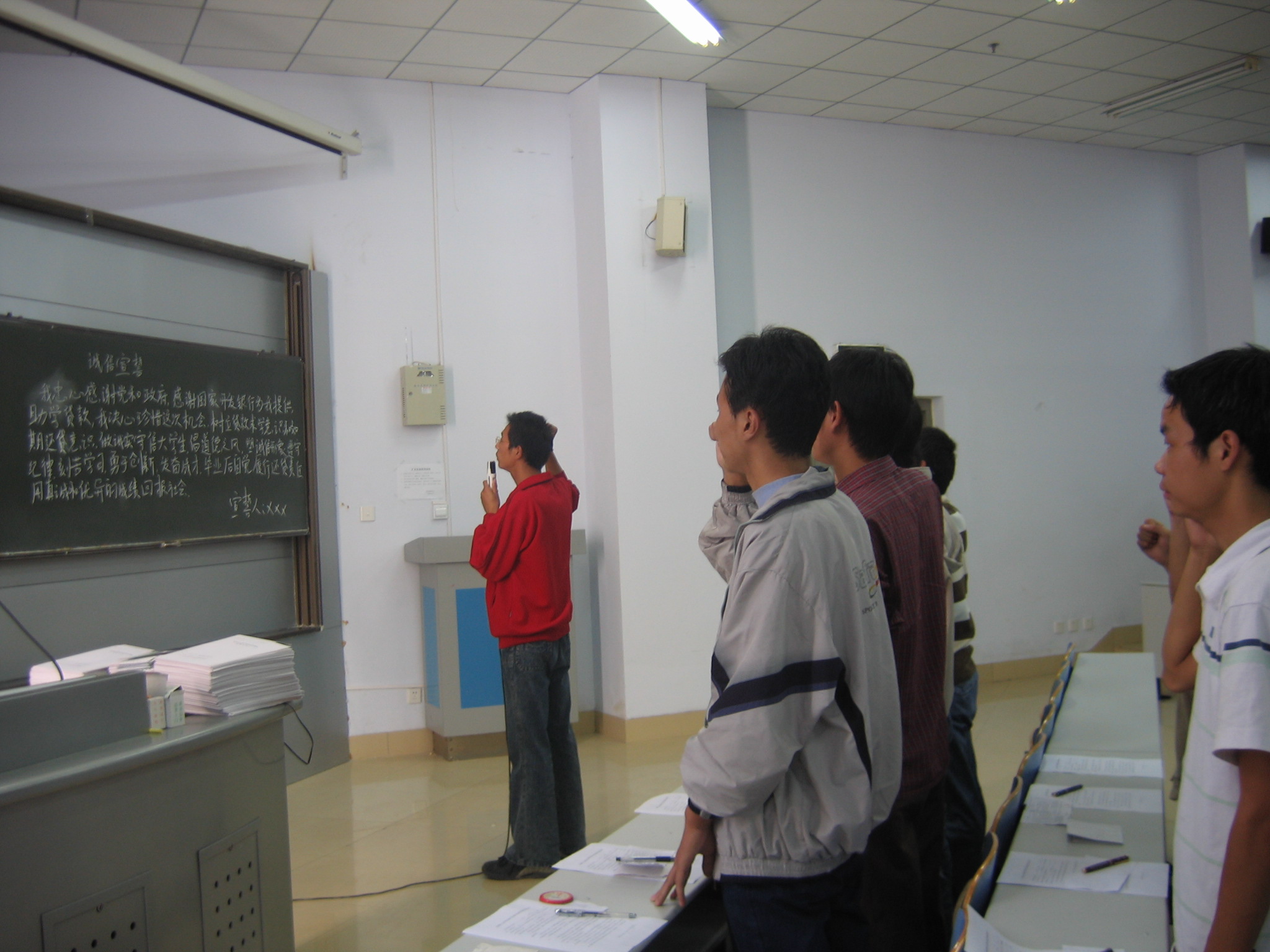 在贷款合同签字之前,刘书记就两年来我院诚信贷款工作概况作了简单回顾,他指出了助学贷款对于广大经济困难学生的重要意义,并就助学贷款需履行的诚信还款信诺作了说明;随后,315名受助学子集体举手宣读了《诚信誓言》,决心刻苦学习,信守承诺,按期还款,以优异成绩回报社会。