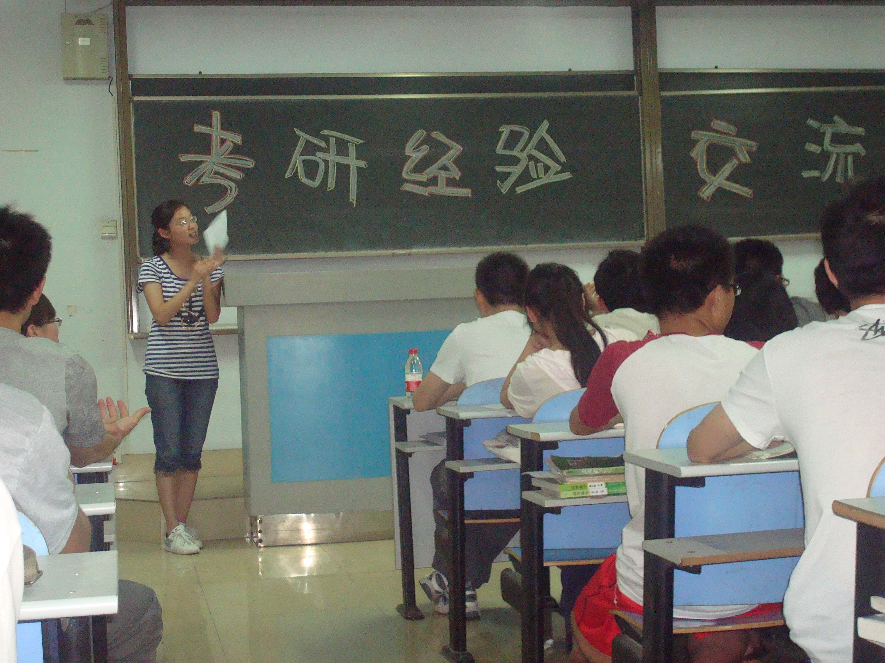 5月11日19点30分,技术物理系在教三楼800举办了考研经验交流会,08级考取研究生的同学应邀为09级和10级同学进行了考研指导。