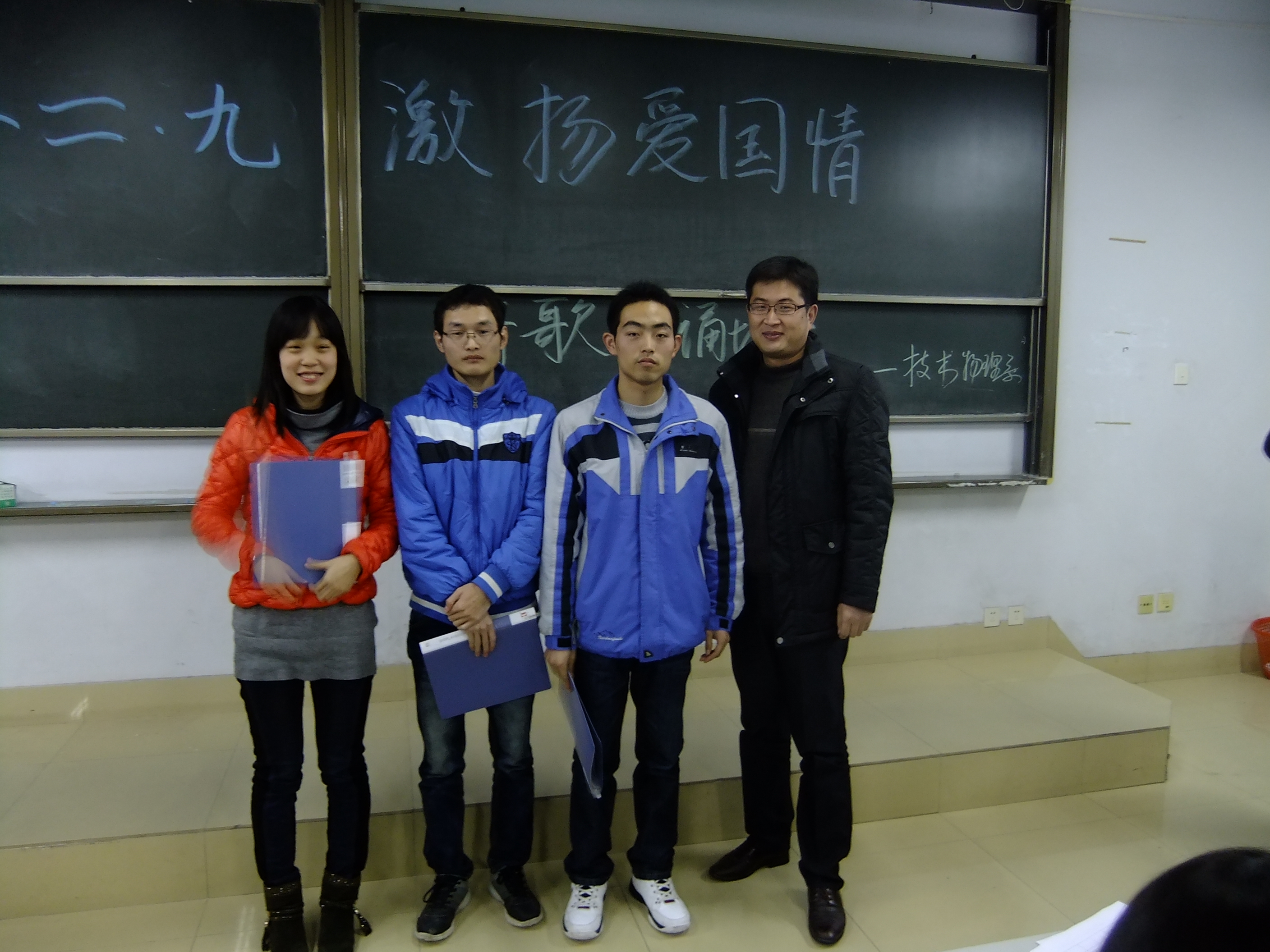 为纪念“一二・九”运动76周年,激发广大青年学生的爱国热情,11月28日下午,技术物理系在东风校区教三楼509举办了以“纪念“一二・九”,激扬爱国情”为主题的朗诵比赛。