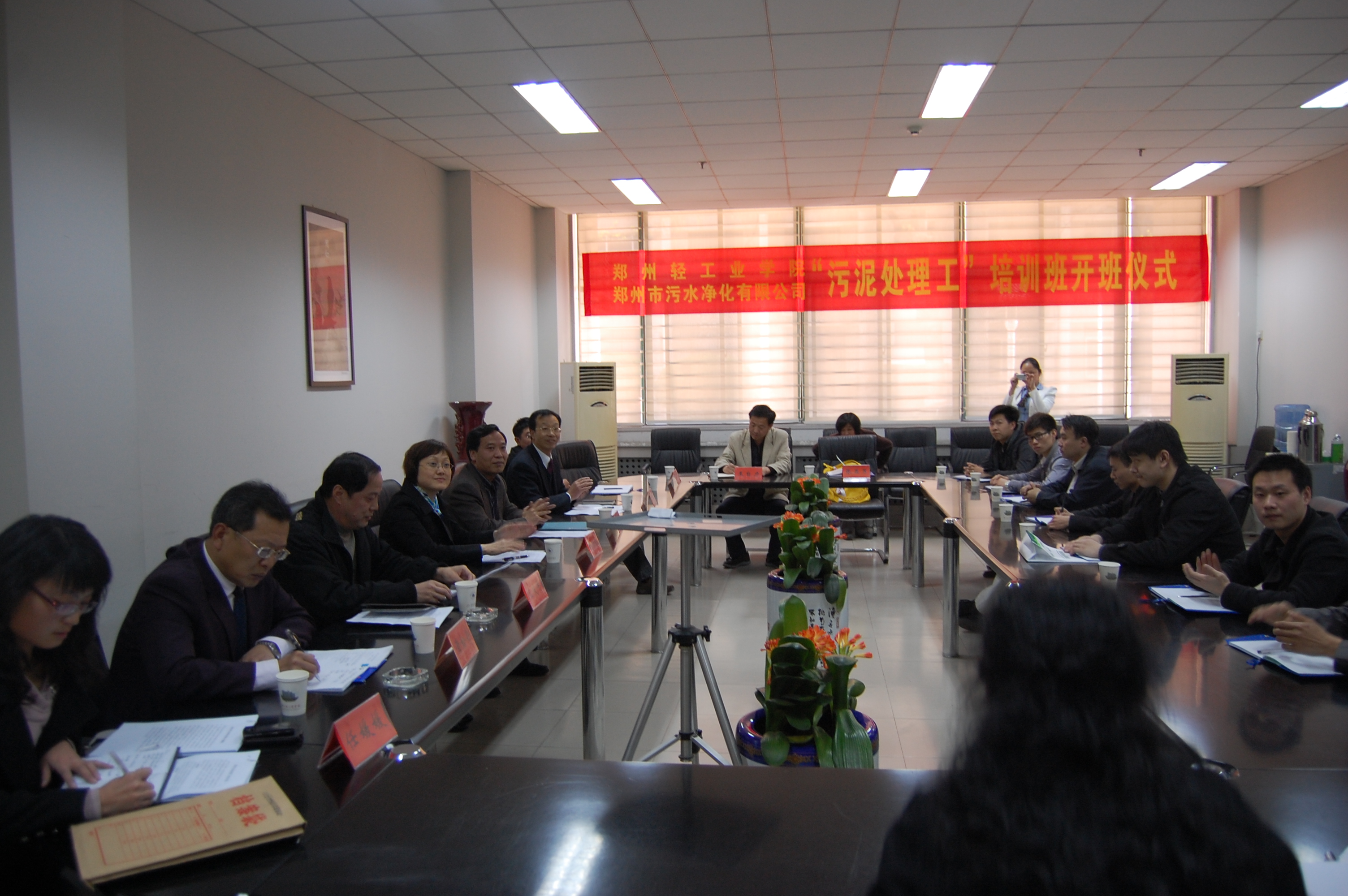 2011年3月29日下午三点,继续教育学院承办的郑州市污水净化有限公司“污泥处理工”培训班开班仪式在我校图书馆第三会议室隆重举行。郑州轻工业学院赵继红副校长出席仪式并讲话,郑州市污水净化有限公司罗中玉副总经理、继续教育学院有关负责人、授课教师代表以及培训班全体学员共30余人参加了开班仪式。第三党总支书记孟庆平主持开班仪式。