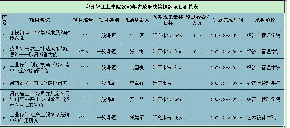 评选工作结束,我校有6项课题获准立项。具体情况如图所示。