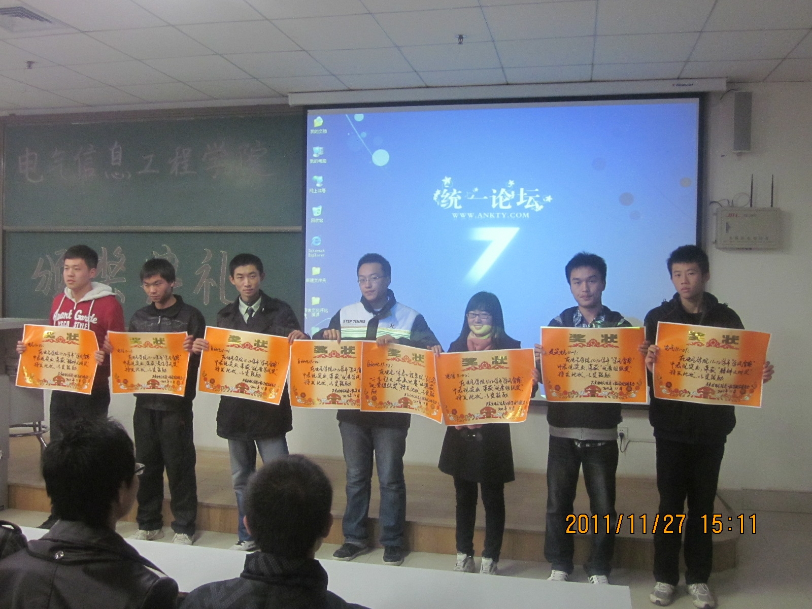 11月27日下午,电气信息工程学院在科学校区电教楼106教室举办 “宿舍文化评比月”暨“学风督察”颁奖典礼,学院分团委老师及各年级辅导员出席典礼。