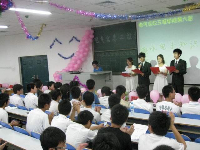 5月28日,电气信息工程学院在科学校区电教楼109教室成功举办趣味电子知识竞赛。电气学院10级4个专业选出7支代表队参赛,近200名同学到场参与该活动。