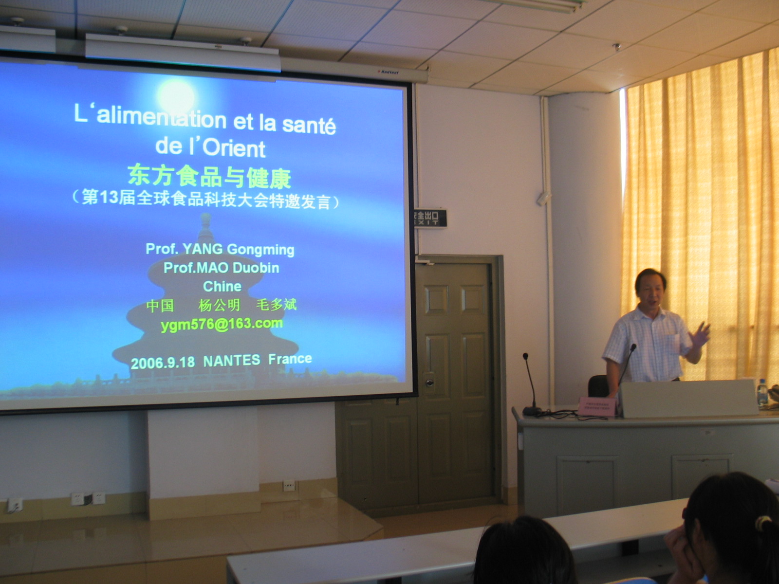 6月3日上午10:00~12:00,迎我校30年华诞,我校食品科学学科省级特聘教授杨公明在教三楼200教师厅做了关于《东方传统食品与健康》的学术报告。