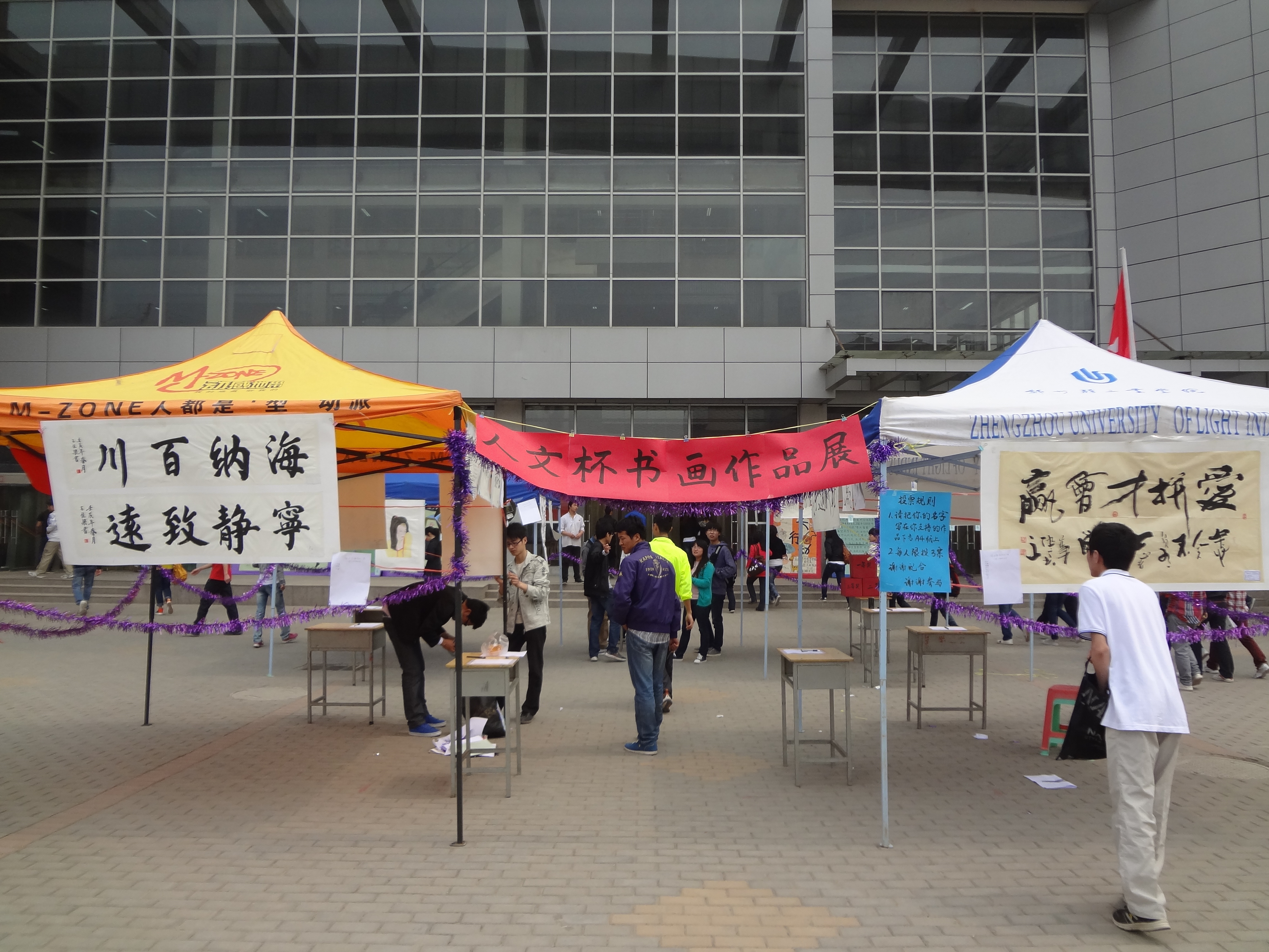 为丰富学生的课余文化生活,展现当代大学生风采,计算机院特在科学校区举办了一年一度的“人文杯”书画艺术大赛。大赛部分获奖作品已在食堂门口及电教楼大厅展出。 本次活动获得了广大同学们的积极参与。大赛先后收到了来自我院及食品与生物工程学院、机电学院、经管学院等兄弟院系的一百二十余件参赛作品,内容涉及书法、素描、水彩、动漫形象设计等多种形式,其中尤以书法居多,行、草、隶、楷皆有,且各见所长,多有创新;绘画作品则手法细腻准确,色彩鲜丽协调,造型新颖,深具才气。