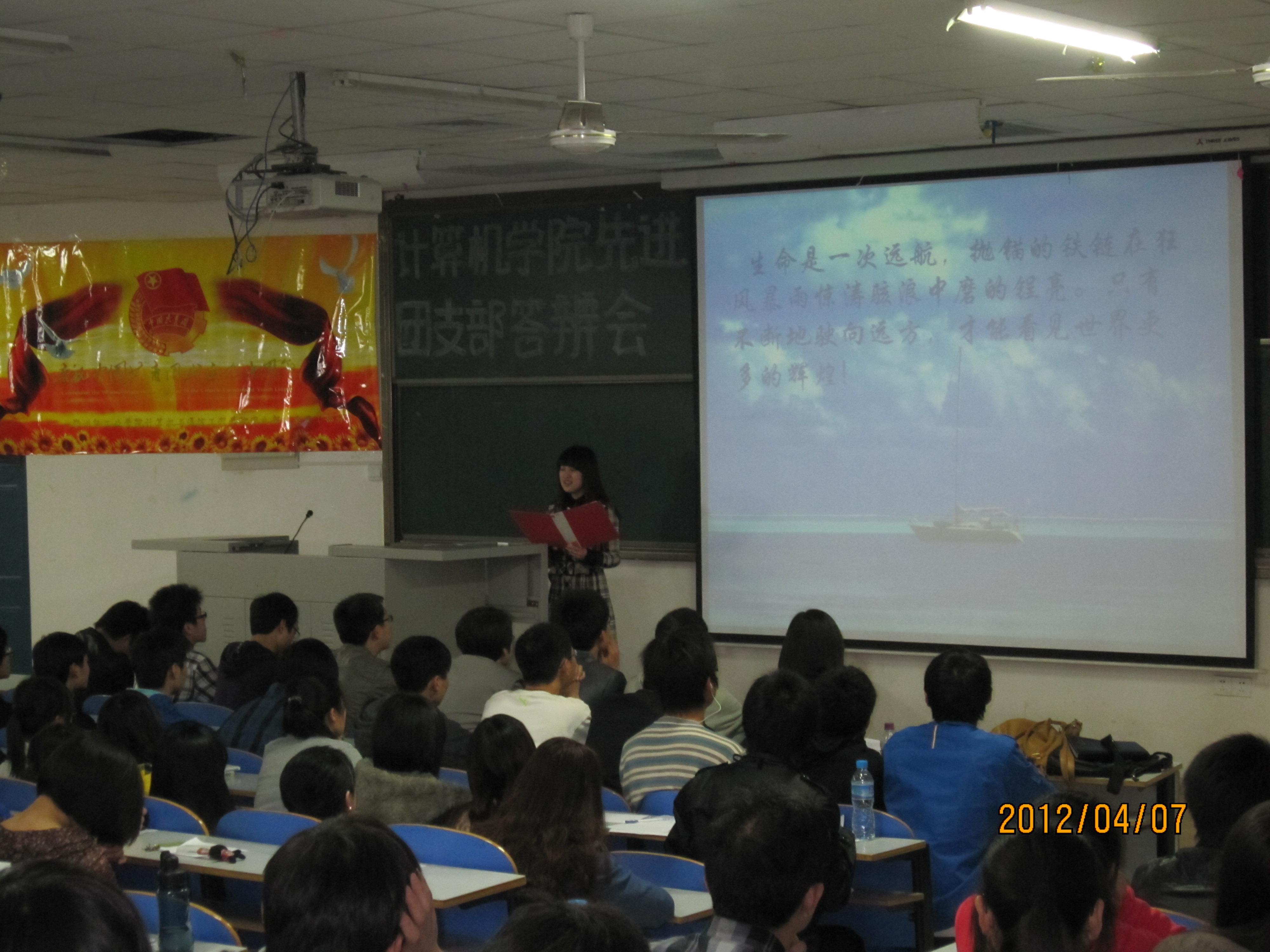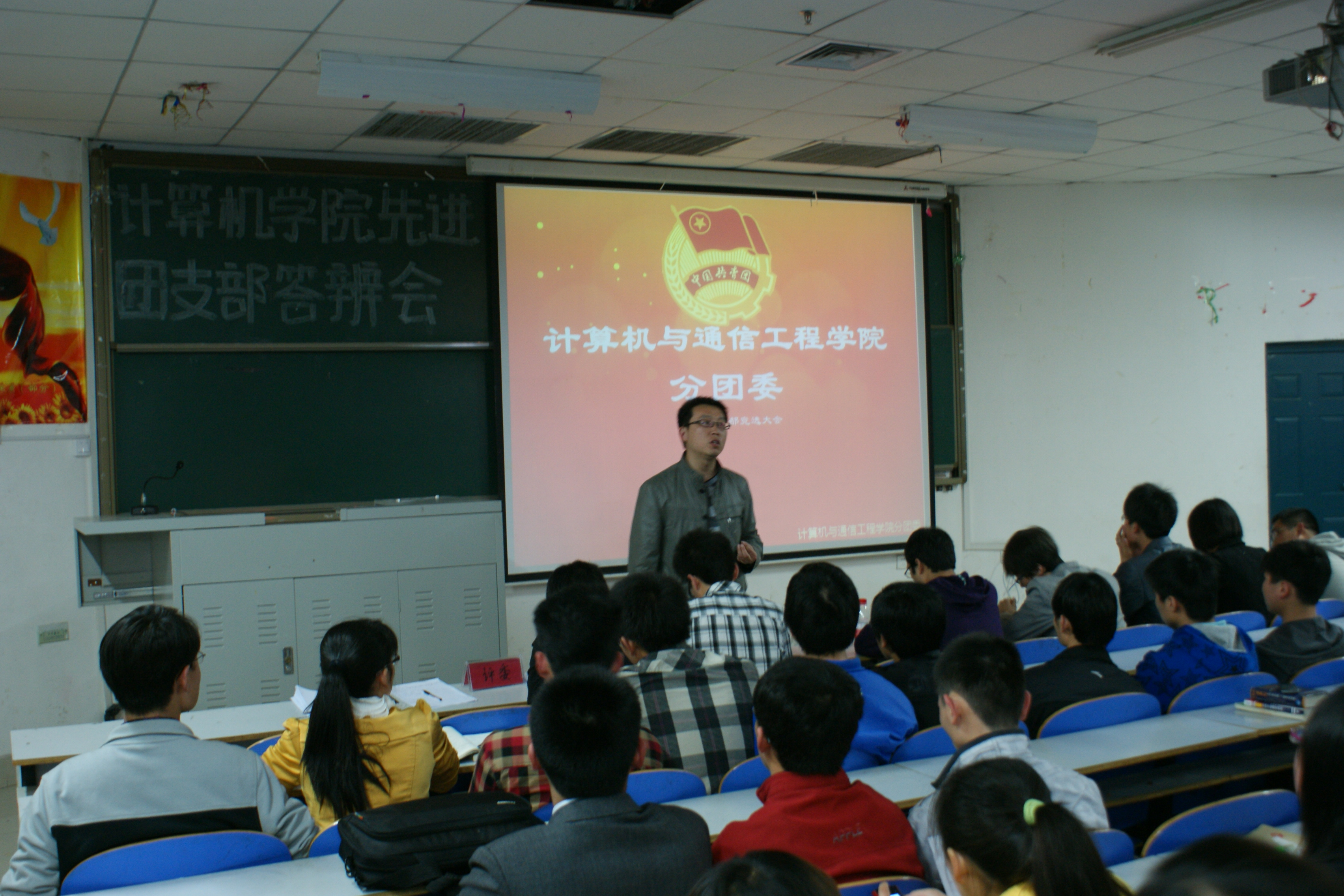 4月8日,学院在科学校区举办了计算机学院先进团支部宣讲大会,由于参选班级较多,活动在电教楼108、109分为两个场地同时进行。党总支副书记黄敏老师,分团委书记宋文军老师,学生会主席团成员和各参选班级与会。