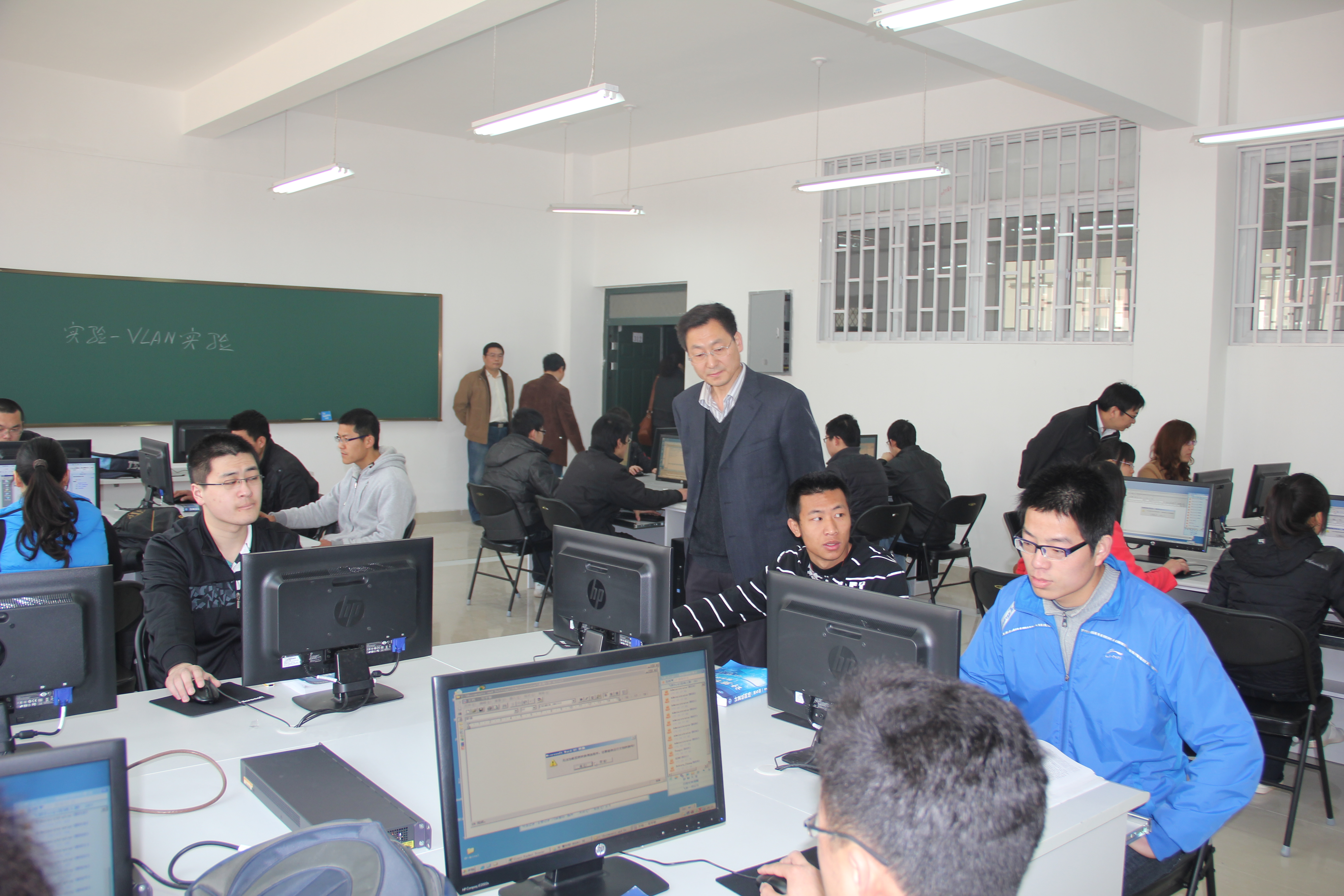 在学校党委和行政的正确领导和关怀下,各职能部门通力协作,计算机与通信工程学院大楼部分开始投入使用。按照实验教学安排,3月27日上午第二大节迎来了第一次实验课。首批接纳的学生是通信工程09-1班,实验课程是《数字通信网》,由崔伟老师指导。教务处张东初处长亲临实验室指导工作,计算机与通信工程学院甘勇院长、贾菁菁书记、张素智副院长也在现场观摩实验,察看实验开出情况,提出了一些指导性意见。从本周开始,计算机与通信工程学院楼实验室将陆续接纳相关专业和实验课程的实验课,这标志着计算机与通信工程学院在科学校区的搬迁建设工作进入了新的阶段。