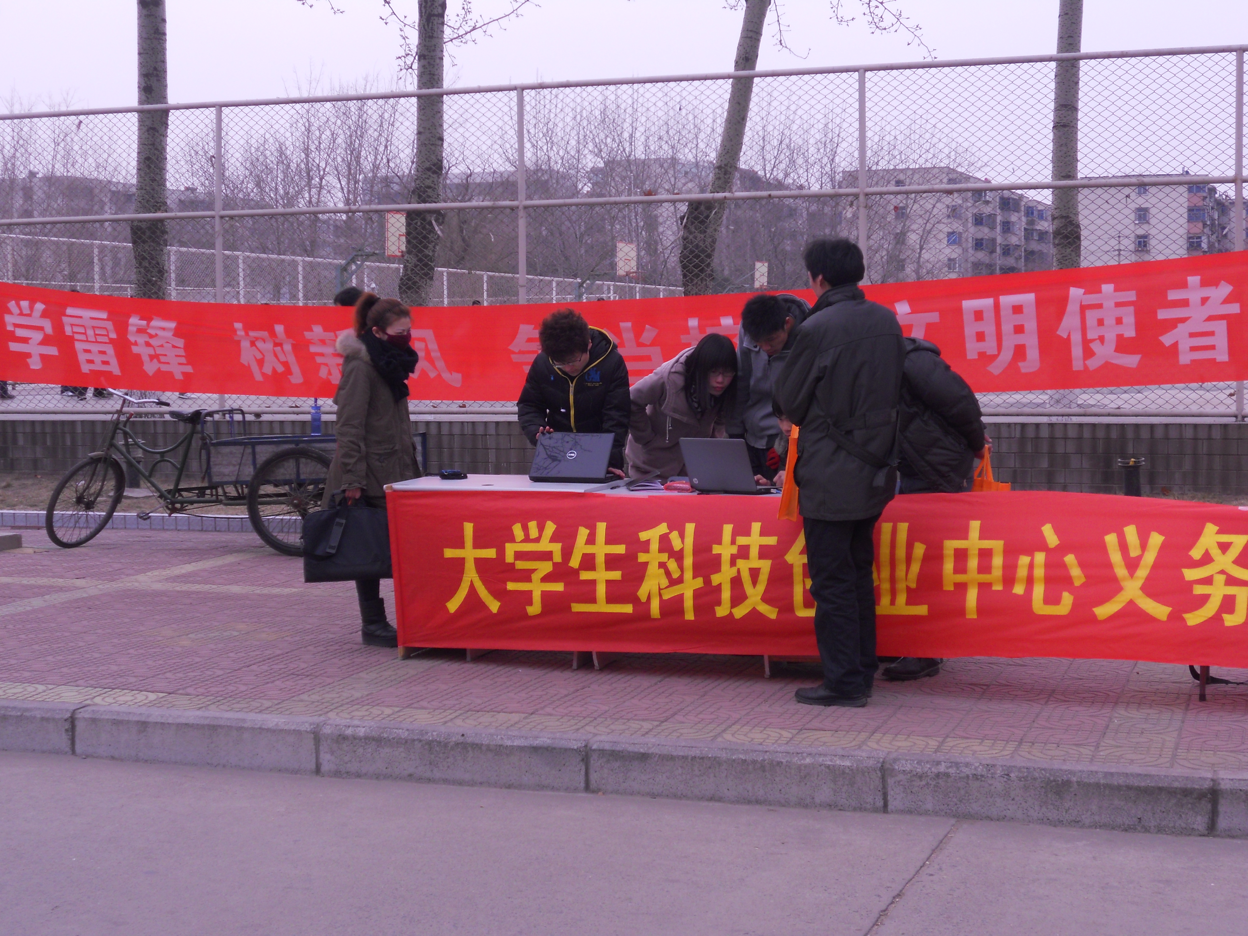 2月25日,大学生科技创业中心“电脑义务维修服务队”全体成员早早的就拿着工具来到了东风校区,搭建好棚子,准备好工具,等候着为广大同学的电脑提供全方位服务。不一会儿前来咨询的师生就络绎不绝,许多同学、老师都把自己的电脑抱过来维修,咨询使用电脑过程中遇到的问题,讨教电脑维护知识,中心的成员都热情、耐心的给予了解答。按照计划,义务维修活动将延续至今年三月,老师和同学们电脑方面有需要的话我们将不遗余力给予帮助和解决。