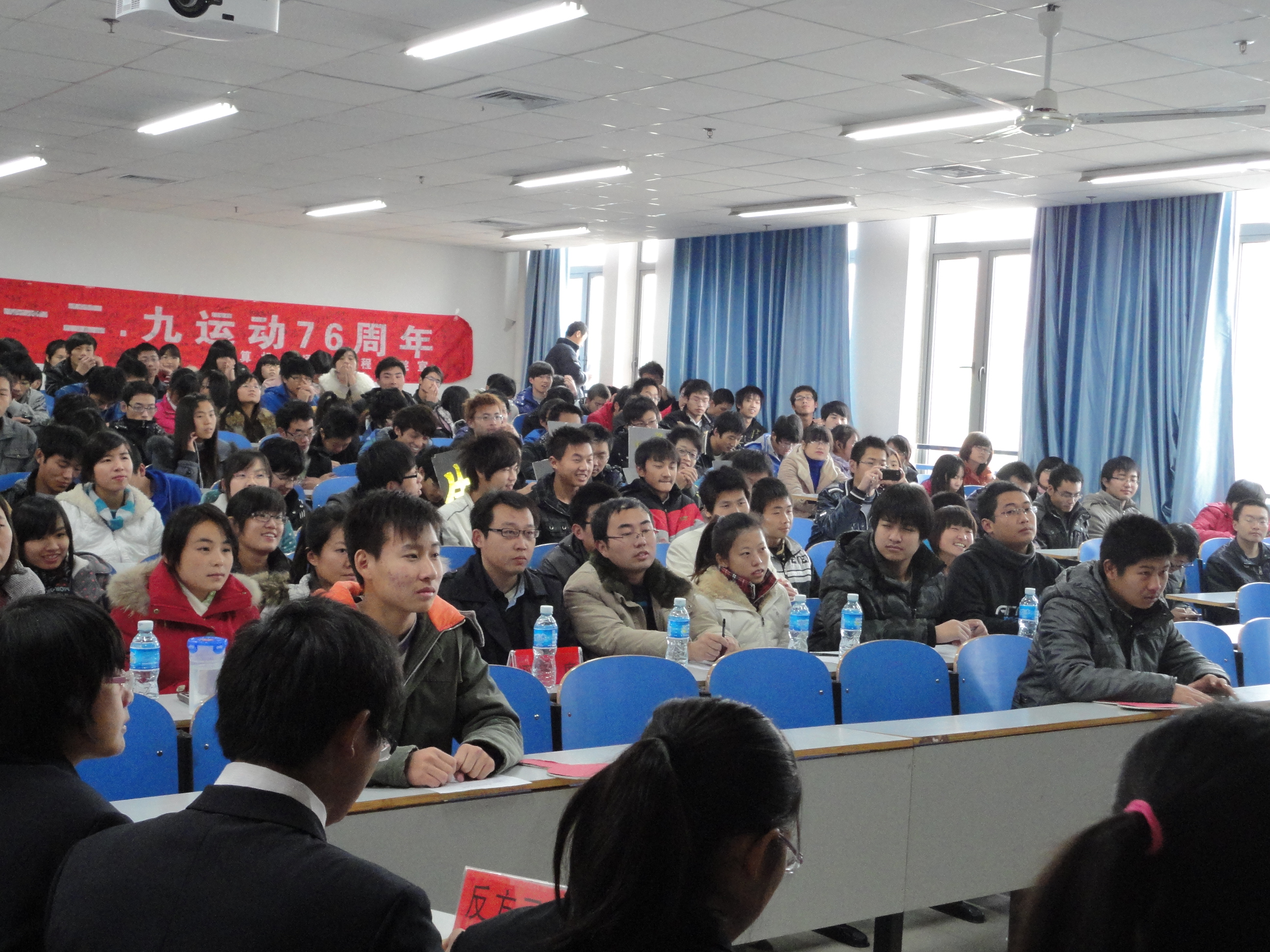 为纪念“一二九”运动,弘扬一二九精神。12月1日,由计算机与通信工程学院主办的第十届华语杯辩论赛决赛在电教楼404教室落下帷幕。分团委书记宋文军老师,各位辅导员老师及学生会主席团出席本次决赛并担当评委。