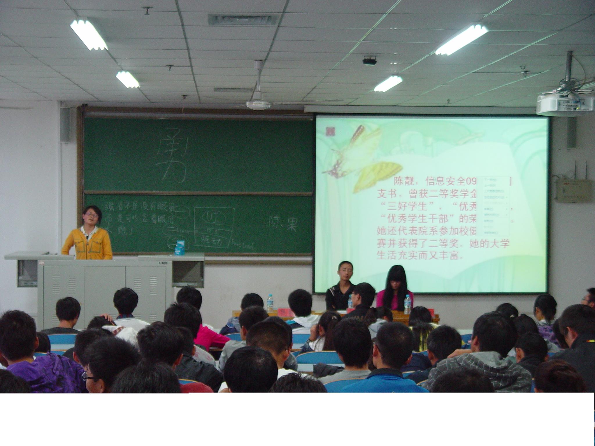 10月20日下午3:00,计算机学院在科学校区电教楼102、103等四个教室分专业举办新老学生学习成才经验交流会。国家奖学金、励志奖学金获得者代表及学习优秀、工作突出的高年级同学同2011级新生分享自己的学习经验和心得体会。