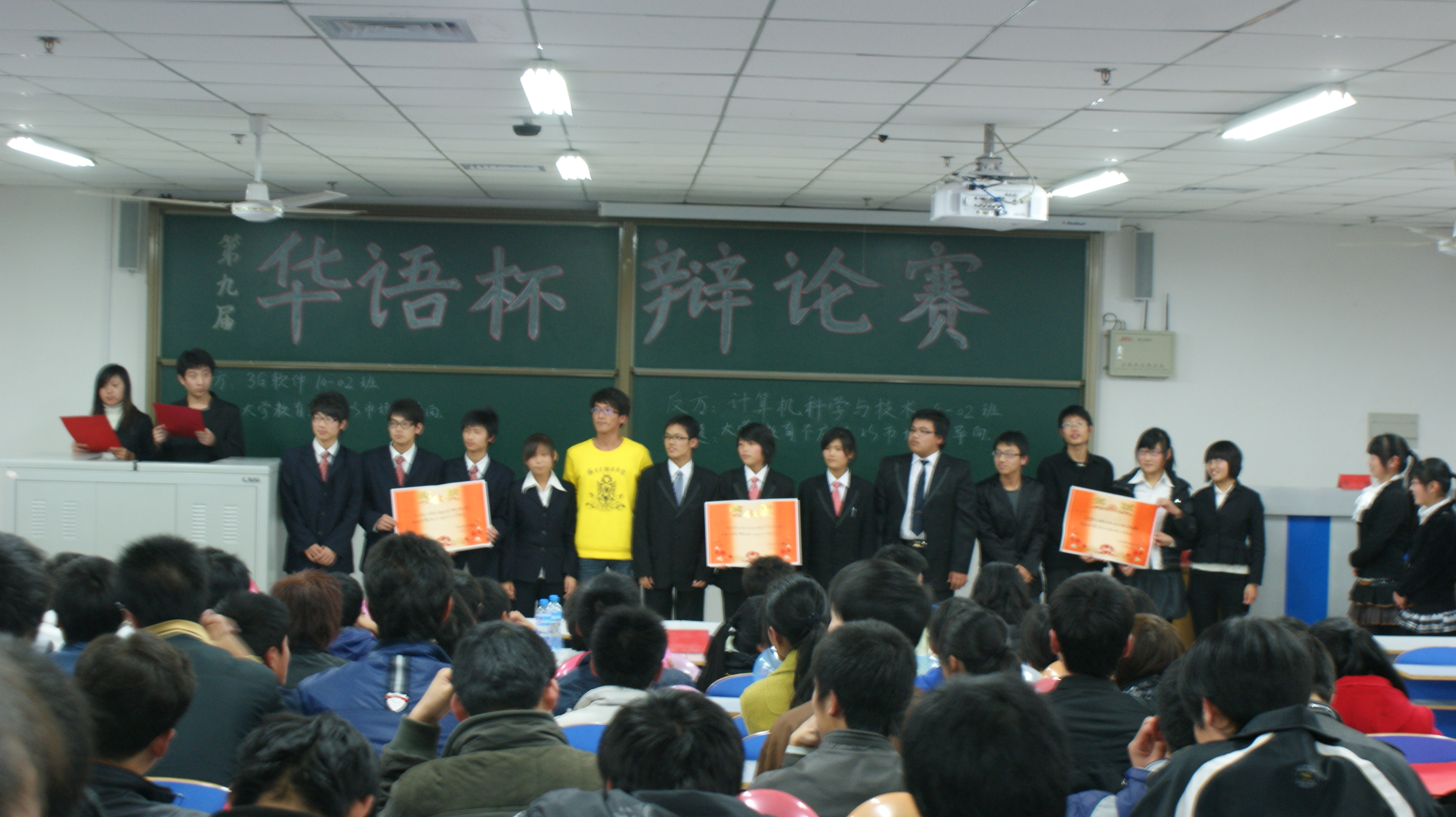 经过长达一个月的激烈角逐,计算机与通信工程学院第九届辩论赛于2010年12月3日顺利落下帷幕。计科10-2班辩论队和3G软件10-2班辩论队历经四轮斟选,进入巅峰对决。最终,计科10-2班辩论队更胜一筹,夺下桂冠,3G软件10-2班的张海旭荣获 “最佳辩手”荣誉称号。