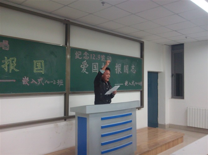 本次团日活动,“传承12.9运动精神,畅谈当代大学生肩头使命”这一主题之下,各学生班级自主采取了演讲、朗诵、宣誓、座谈、播放纪录片,爱国歌曲大家唱等丰富多彩的活动形式,生动的回顾了一二九运动中北平大学生们的爱国激情和对日本军国主义分子的憎恨。感悟当代,缅怀12.9先辈的功绩,同学们深入讨论了“作为当代大学生,我们应该做什么”这一活动主题。