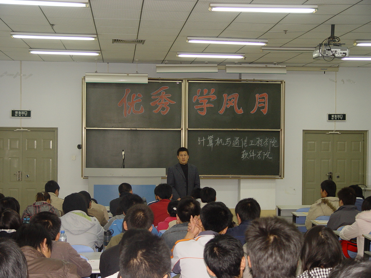 11月20日下午4:30,学院召开计算机学院、软件学院各班级主要学生干部大会。卢中宁老师会上强调了良好学风的重要性,提出在11月中旬到12中旬我院将通过各种活动开展优良学风月活动来促进我院学风建设;进一步强调了我院的教育教学管理规定和日常学生管理规定,并对学生情况周报告制度和请销假制度作了进一步说明;其次,要求同学们树立安全意识,加强安全防范,特别强调了宿舍安全用电问题;最后,要求所有学生干部做好榜样,切实做好上传下达工作,坚持履行好自己的职责,及时和老师沟通,共同促进我院学风建设。