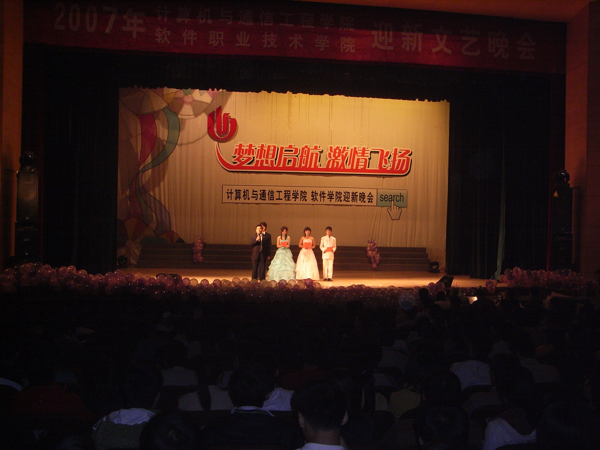 10月14日晚,计算机学院、软件学院2007年“梦想启航,激情飞扬”迎新文艺晚会于校大礼堂成功举行。学院党政领导、部分教师和1000余名新生共同观看了演出。