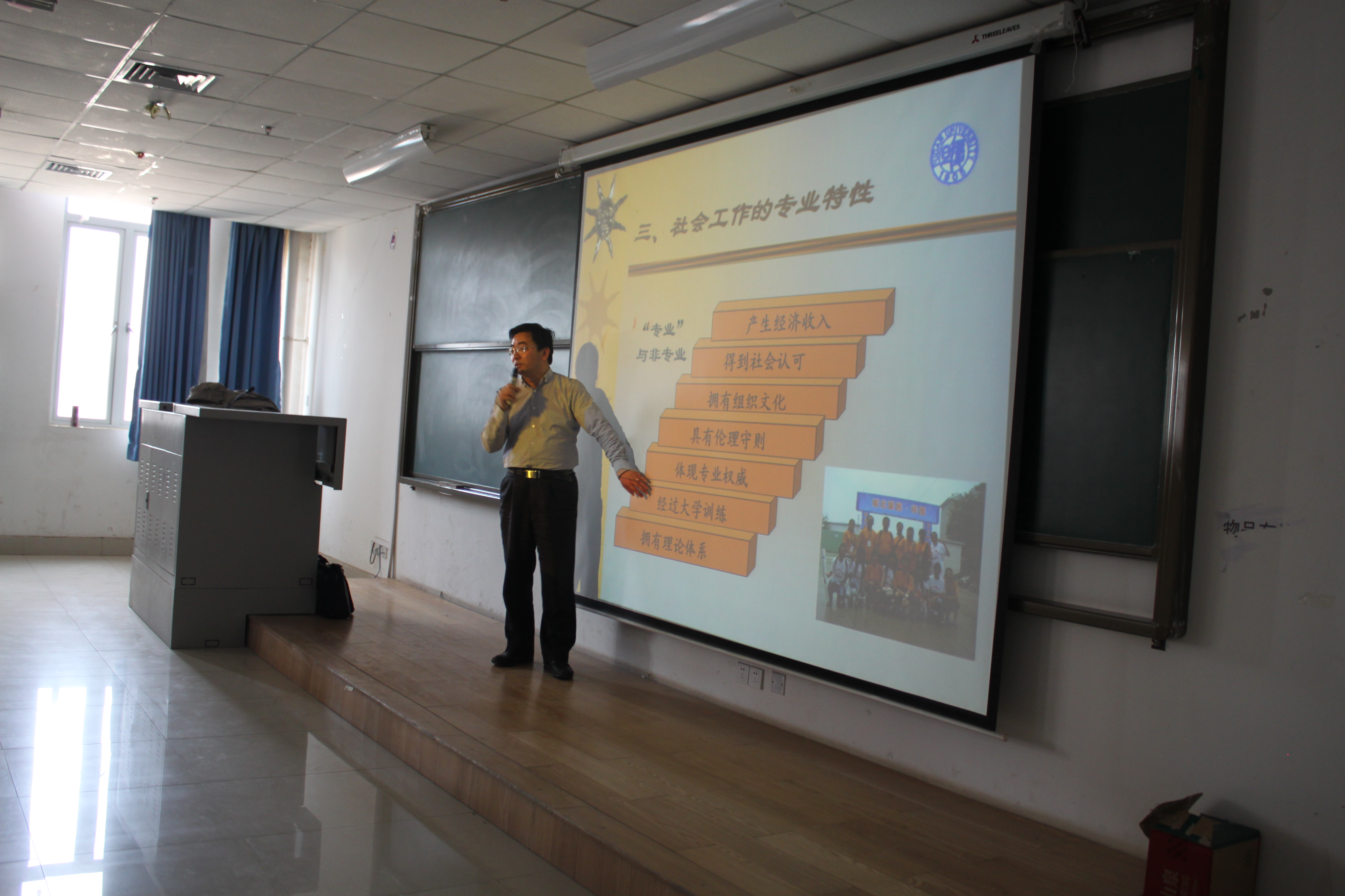 2012年4月 13日下午,受我校政法学院的邀请,复旦大学社会发展与公共政策学院博士生导师顾东辉教授在我校科学校区电教楼204教室做了题为“社会工作人才建设的形势与社会工作人员的素养”的报告,政法学院相关教师和学生参加了报告会。