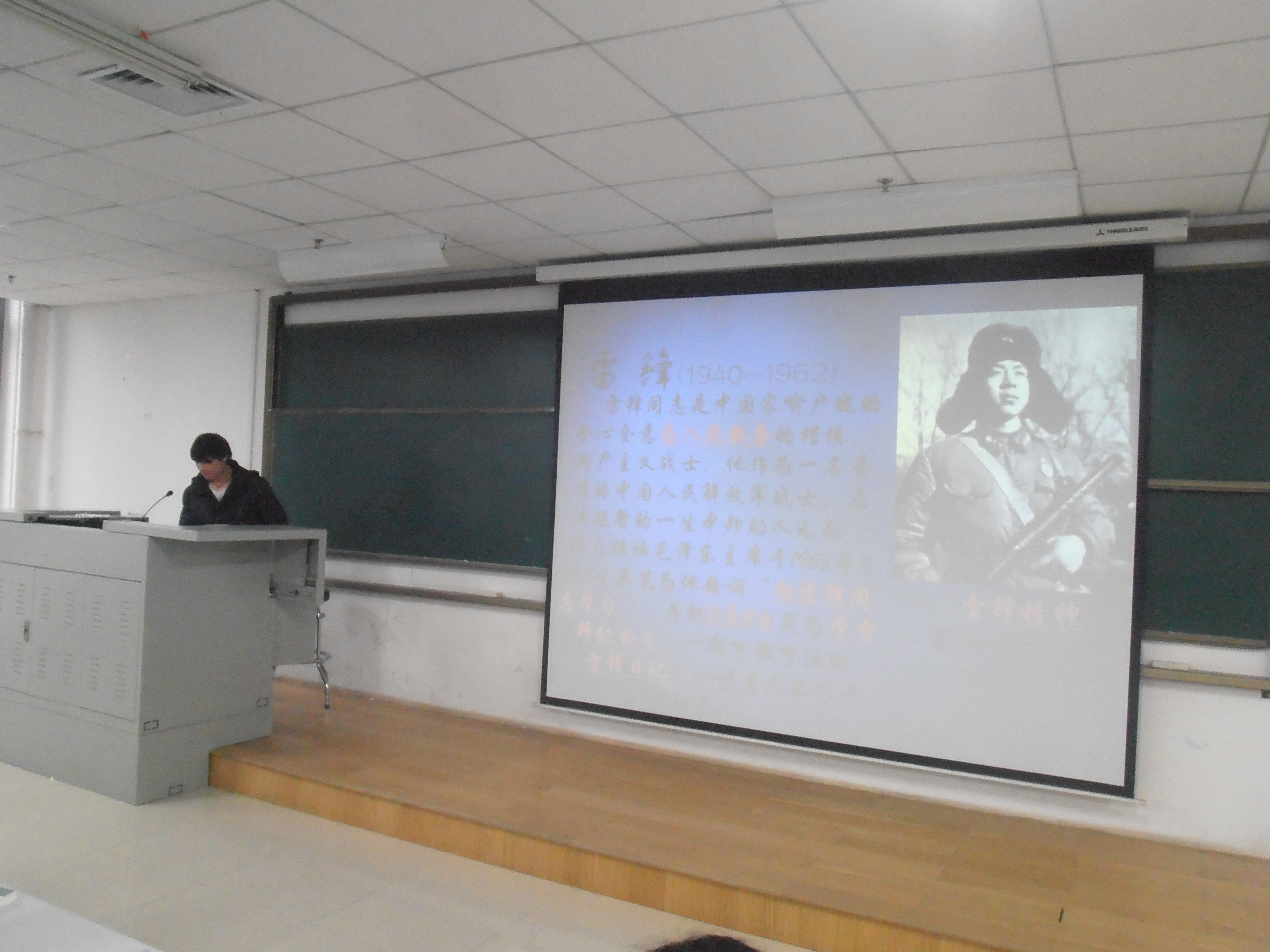 3月1日晚19:00,政法学院面向全体同学,宣扬纪念雷锋精神电影展播《雷锋》在电教楼举行。