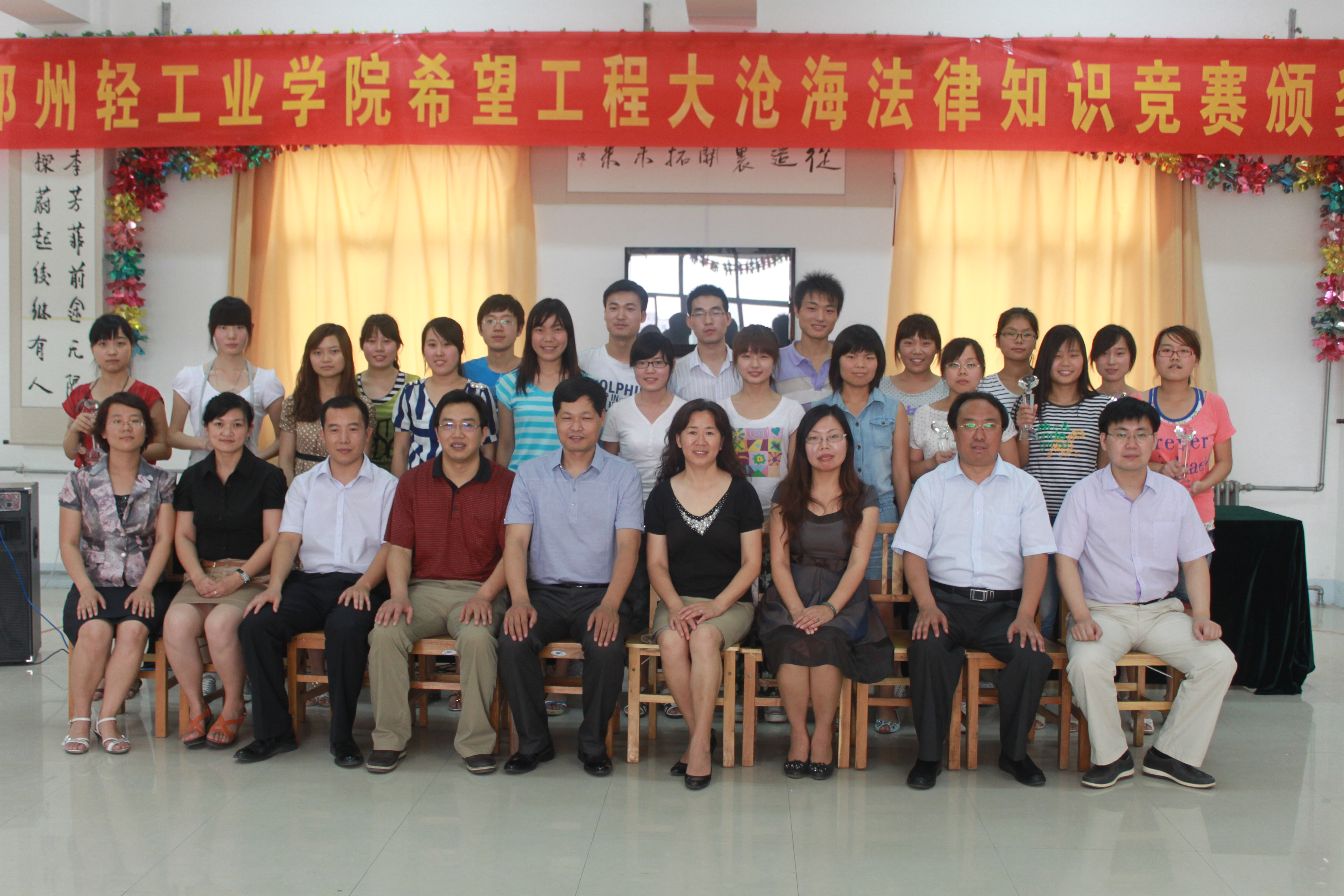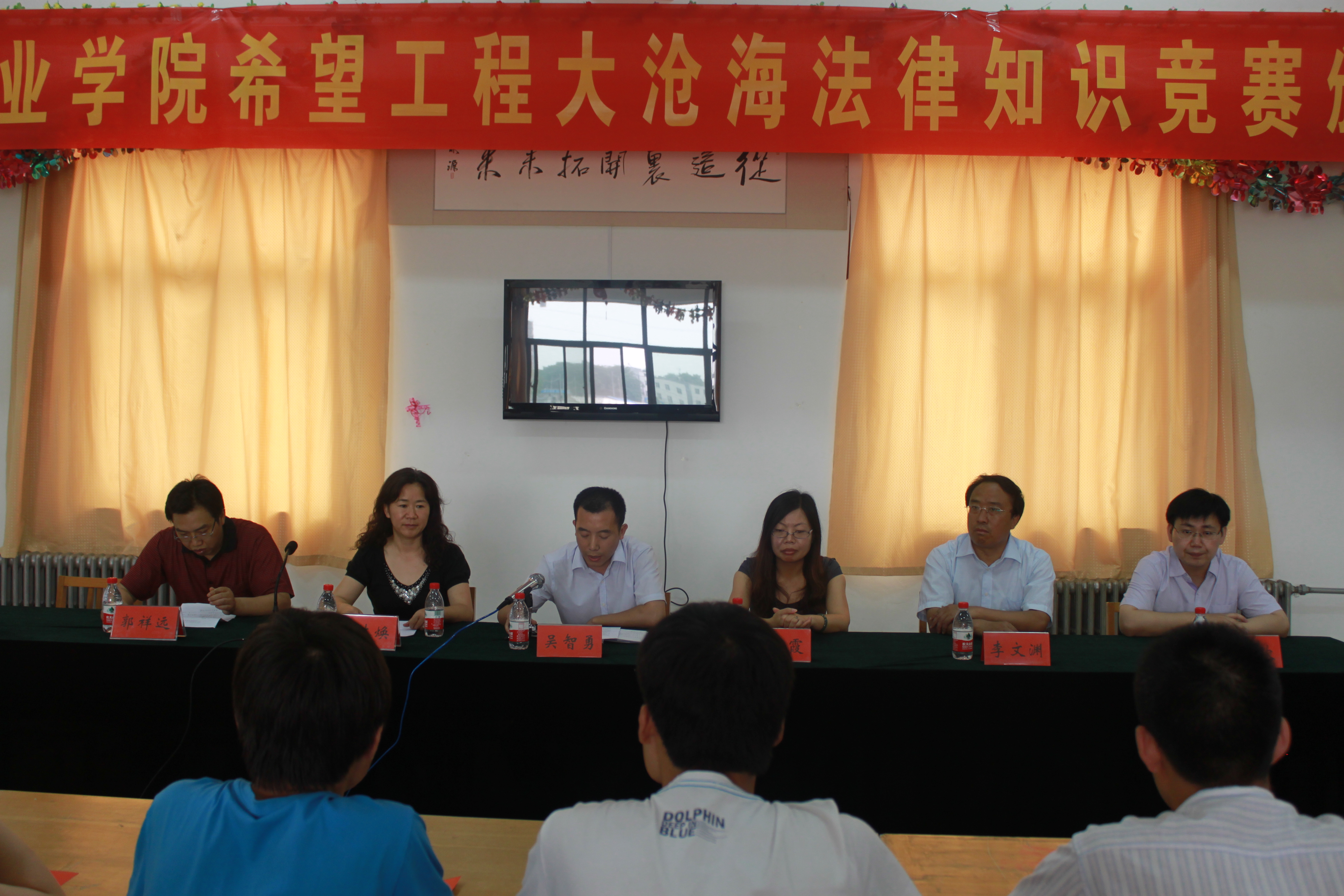 2011年6月14日下午4点半,2011年希望工程大沧海法律知识竞赛颁奖仪式在科学校区顺利召开。大沧海律师事务所吴智勇律师等五名律师,政法学院党总支书记王林焕老师,校党委宣传部副部长李文渊老师,校团委副书记张超钦老师等应邀出席了大会。