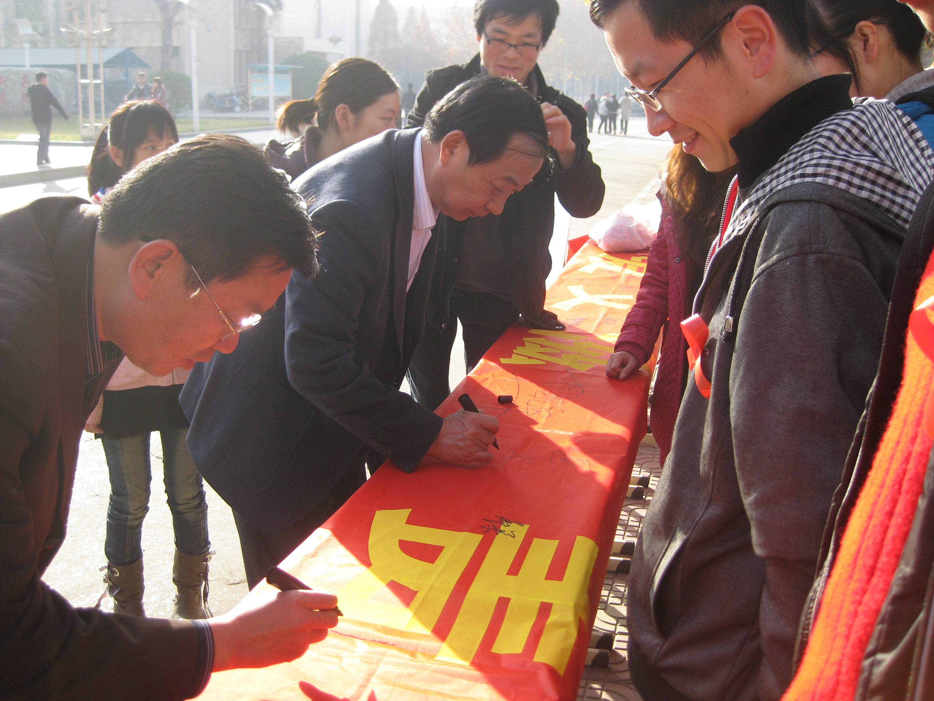 活动持续了一整天。志愿者们拉起的横幅“携手防艾,责任你我”八个大字格外醒目,同学们都停下匆忙的脚步,写上祝福的话语,表达了自己真诚的祝福。活动中,剧校长在学工部胡部长的陪同下也亲临现场,为艾滋病感染者们送上了祝愿,并对同学们提出了鼓励。晚上,在图书馆广场播放了公益影片――《爱在阳光下》、《希望与帮助》,许多同学都驻足观看。同时,在教三楼203教室开展了由08年联合国青少年爱心大使、台湾关爱之家基金会郑州办事处负责人赵明辉主讲的公益讲座,结合个人经历他给同学们讲述了艾滋的公益道路上的故事,并进行了一场大学生和艾滋感染者面对面、心与心的互动交流,让同学们都知道了艾滋感染者的真实生活和内心深处的想法,同学们被现场的气氛深深感染,一次又一次感动的掌声回响在教室。最后此次活动在“烛光祈愿”中结束,点点的烛光,每个人的胸前都别着鲜艳的红丝带,双手合十,为已去的艾滋人祈祷,为还在忍受病痛折磨的艾滋人祈祷。