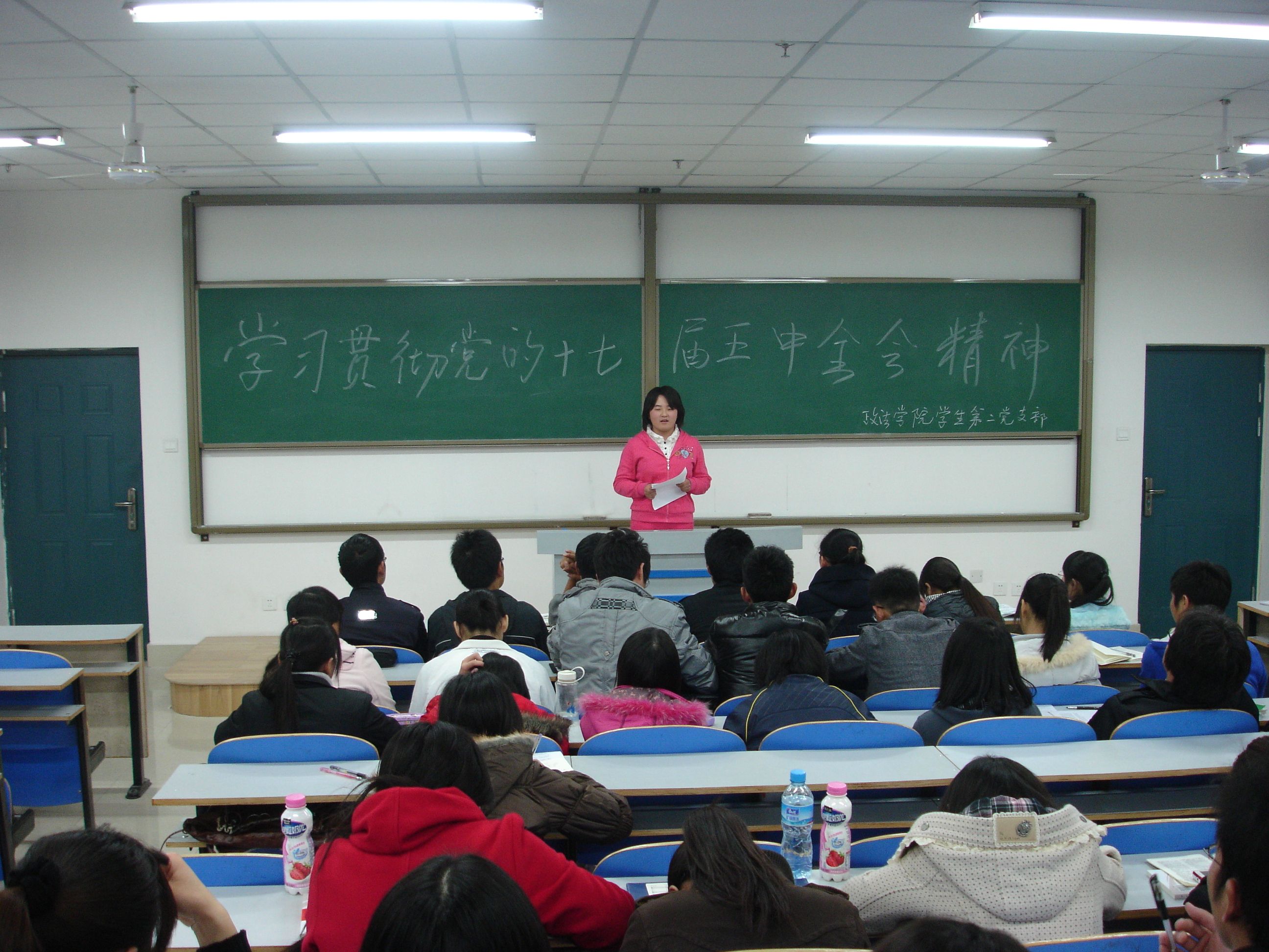 2010年11月17日晚19:00,政法学院学生党支部二支部在科学校区主教楼614组织召开支部会议。以“学习贯彻党的十七届五中全会精神”为主题,政法学院学生党支部二支部全体党员,部分党员培养对象、入党积极分子参加了会议。