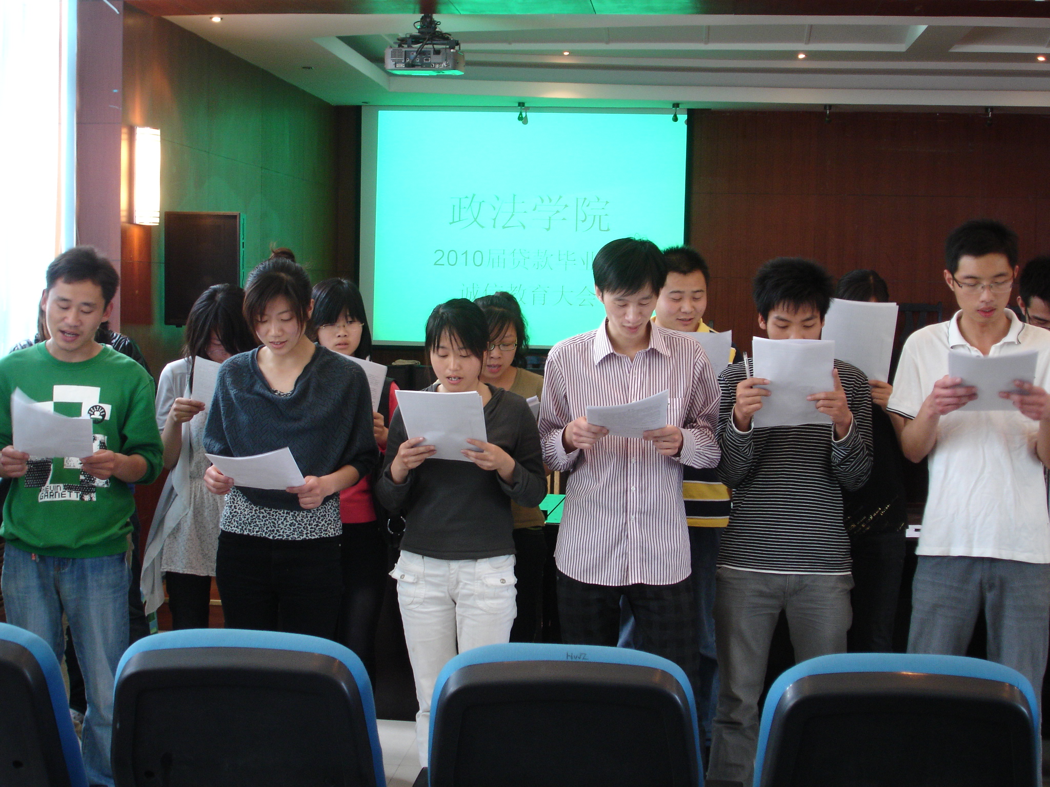 5月7日下午14:30,政法学院在教二楼模拟法庭召开“2010届贷款毕业生诚信教育大会”,政法学院党总支副书记郭祥远老师主持会议,辅导员、贷款毕业生参加了本次大会。