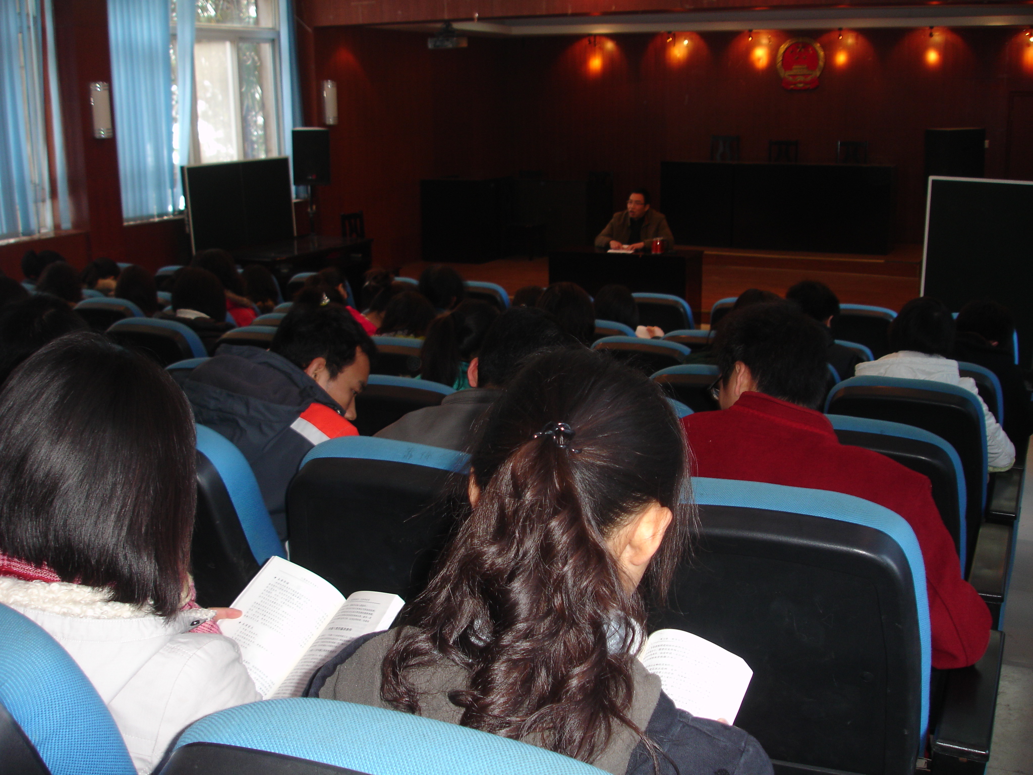 11月12日下午16:30, 法政系第42期入党积极分子培训班在教二楼模拟法庭正式开课。法政系党总支副书记郭祥远老师为学员作了关于《中国共产党员的纪律和作风》的精彩报告。