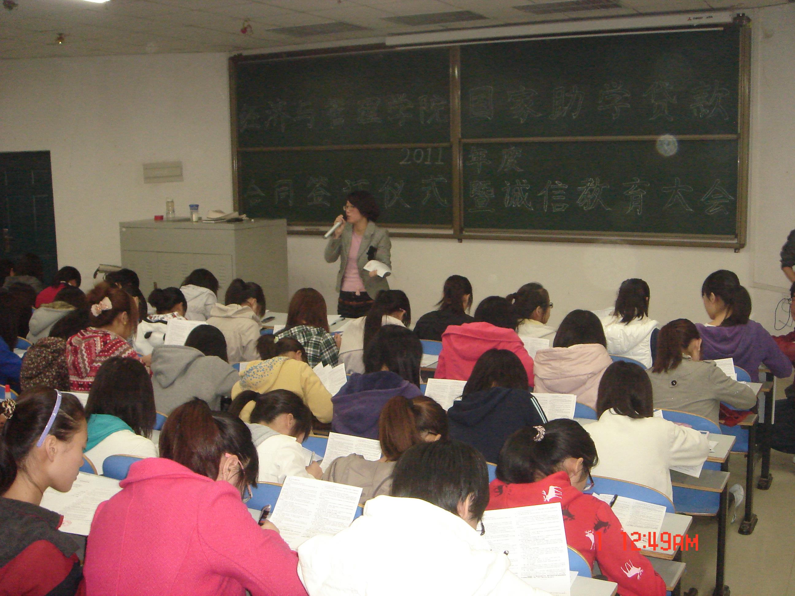 10月28日下午,经济与管理学院在科学校区电教楼109召开2011年度国家助学贷款合同签订暨诚信教育大会。院党总支副书记刘洪民和专职辅导员以及所有贷款学生参加了本次会议。