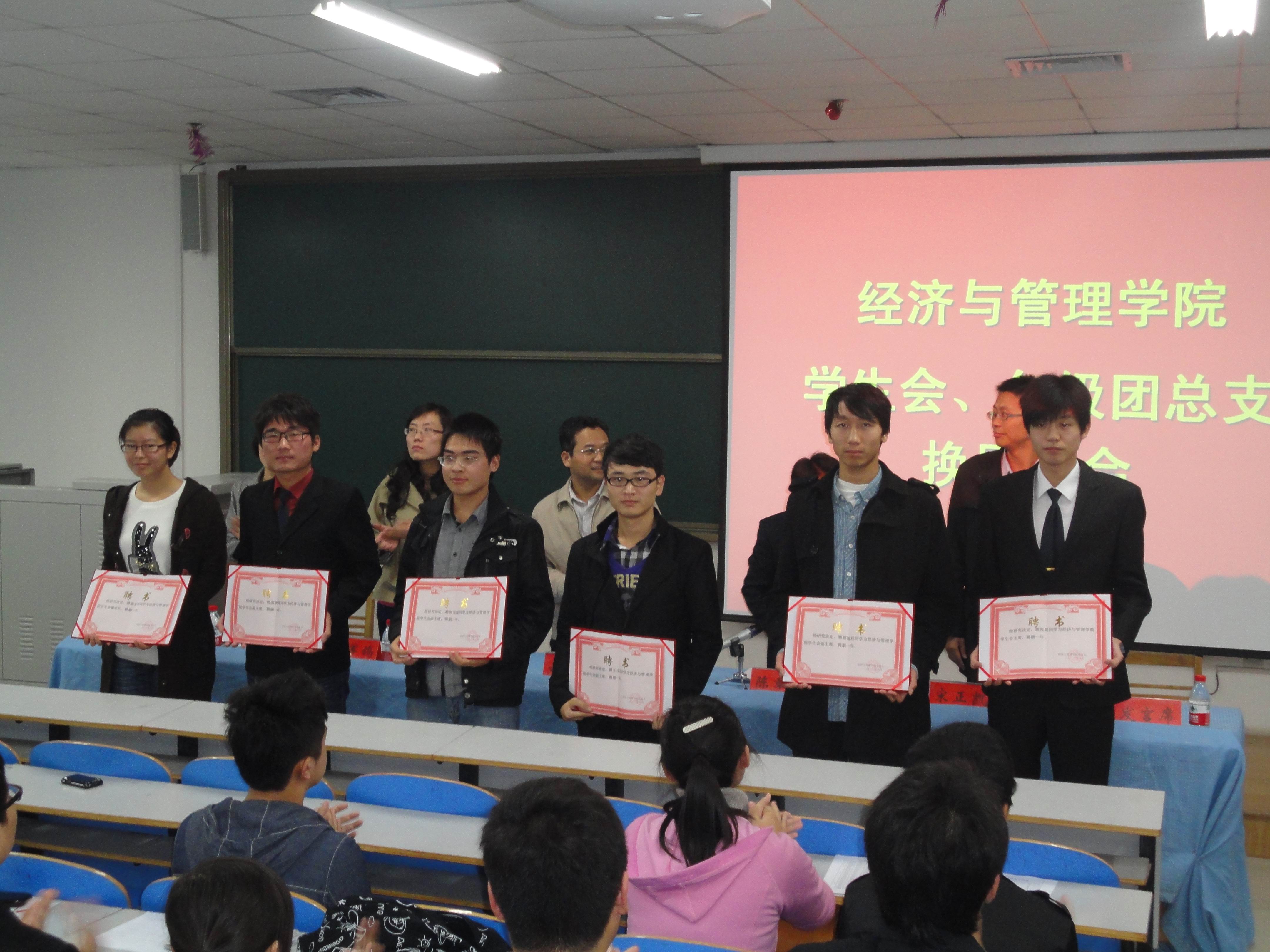 10月28日下午,经济与管理学院学生会、年级团总支换届大会在科学校区电教楼403室隆重举行。经济与管理学院党总支副书记刘洪民、分团委、学工办全体老师出席了本次大会,上一届学生会主要学生干部、新一届学生会和2009、2010级年级团总支全体成员参加了会议。会议由分团委书记陈章美主持。