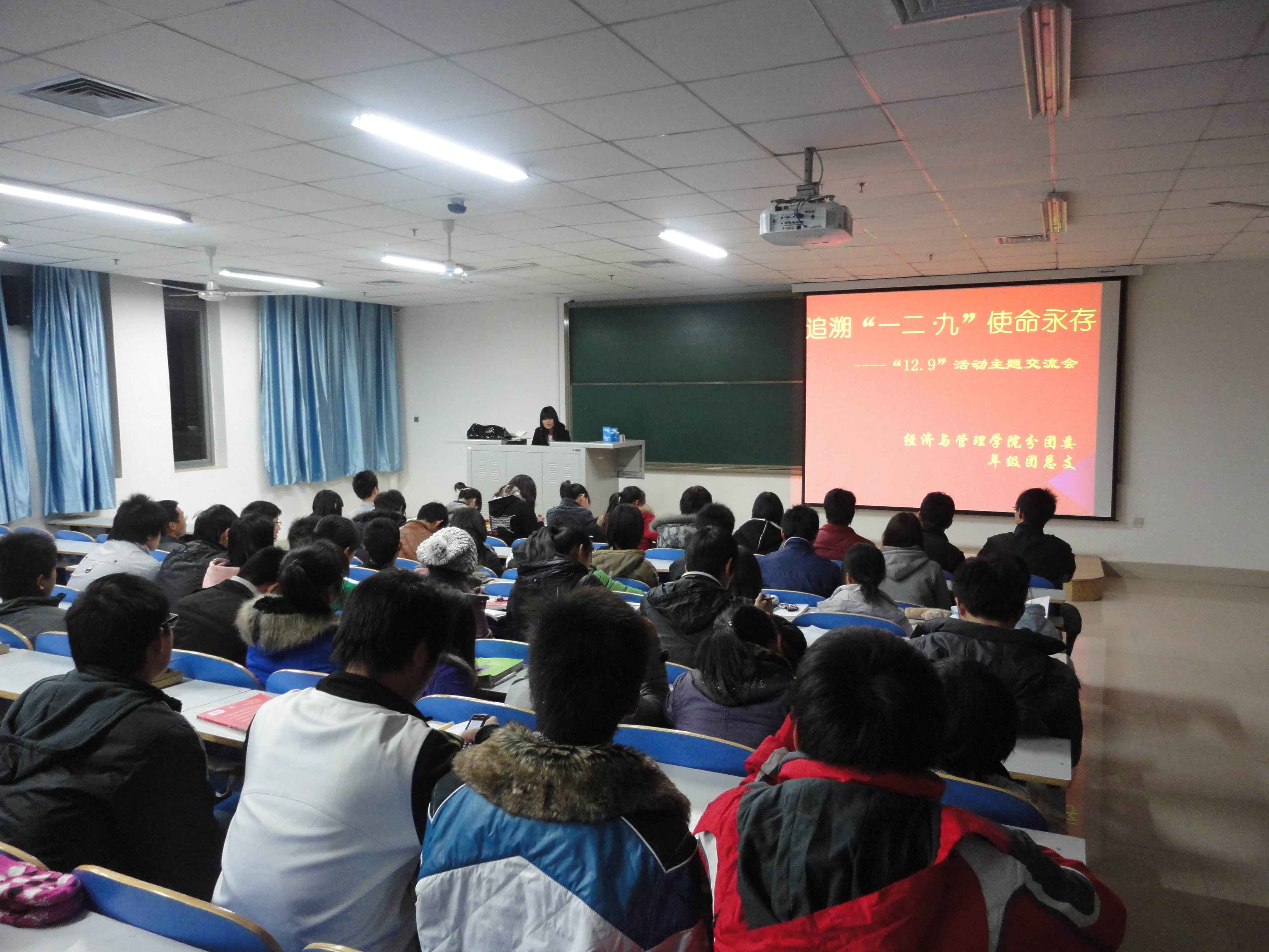为了纪念“一二・九”运动75周年,总结经验,交流体会,12月7日晚,经济与管理学院在科学校区电教楼406举办了纪念“一二・九”运动75周年系列活动之“追溯一二・九使命永存”主题交流会。