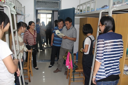 9月18日上午10时,政法学院全体院领导、辅导员一行八人走访新生宿舍,慰问政法学院2012级新生,进一步了解我院新生的学习、生活情况,传递对新生的关怀之情。