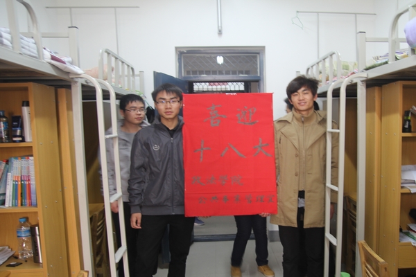活动中,评定小组深入我院12级学生宿舍,对宿舍文明卫生状况进行了认真细致的检查、记录。评比项目主要分为宿舍卫生、寝室内务、寝室文化、宿舍装扮、寝室安全五个方面。我院同学积极配合,为了迎接十八大,宿舍门前都挂起了五星红旗、“喜迎十八大”的横幅以及关于十八大的感言。宿舍干净、整洁、明亮,物品摆放有序,被子叠放整齐,展现了我院学生良好的卫生习惯和积极的生活态度。整个评比过程进展顺利,收到了良好的效果。