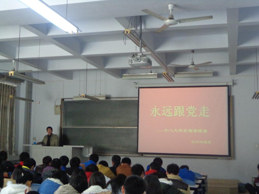 15点,在教三楼107教室技术物理系举行了学习十八大报告辅导会,党总支副书记罗楚新做了题为《永远跟党走》的学习辅导报告。技术物理系2012级全体同学参加了此次报告会。罗书记带领大家学习了党的十八大报告的新思想、新论断、新部署。并对报告中的相关内容作了认真的解读。号召同学们认真学习和领会好十八大会议精神,努力学习,牢记使命,为祖国的富强作出自己的贡献。
