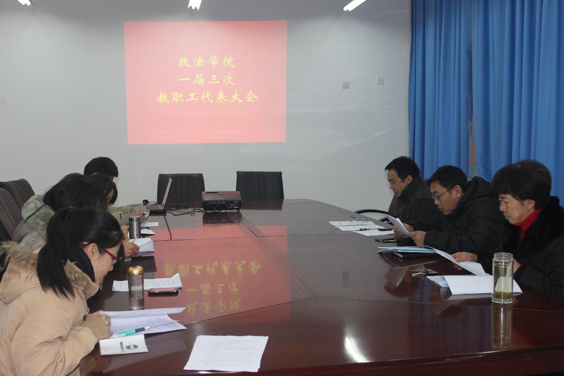按照校工会通知,根据工会工作和教代会工作有关条例,结合政法学院、思政部实际情况,12月13下午14:00,政法学院、思政部在科学校区会议室召开一届三次教职工代表大会。大会由政法学院(思政部)党总支书记王林焕同志主持。