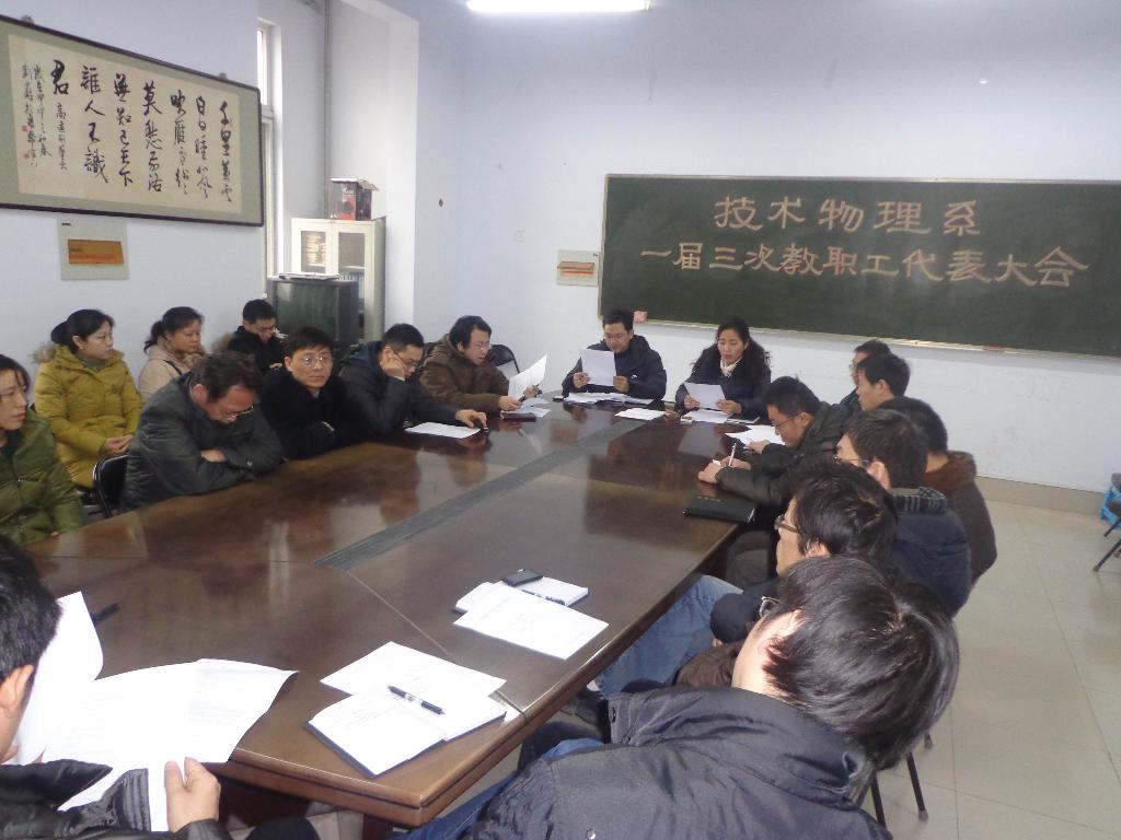 12月27号下午,技术物理系一届三次教职工暨工会会员代表大会在系会议室隆重召开,25名正式代表出席了会议,部分博士、副教授应邀列席会议。会议由总支书记吕晶同志主持。