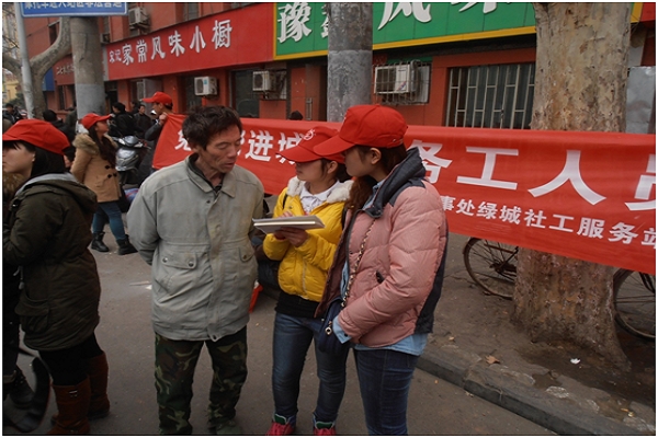 本次活动在解放路铭功路交叉口,以小组为单位开展。活动过程中,同学们充分发扬雷锋精神,细心为前来咨询的务工者解答疑问、提供指引;记录下务工者的基本信息、工作意向等相关内容,并进行整理,最后将刊登在大河网专栏,供有需求的单位参考。活动共进行了两个多小时,同学们记录了一百二十多位外来务工人员信息,圆满完成了任务,得到了社会的广泛好评。