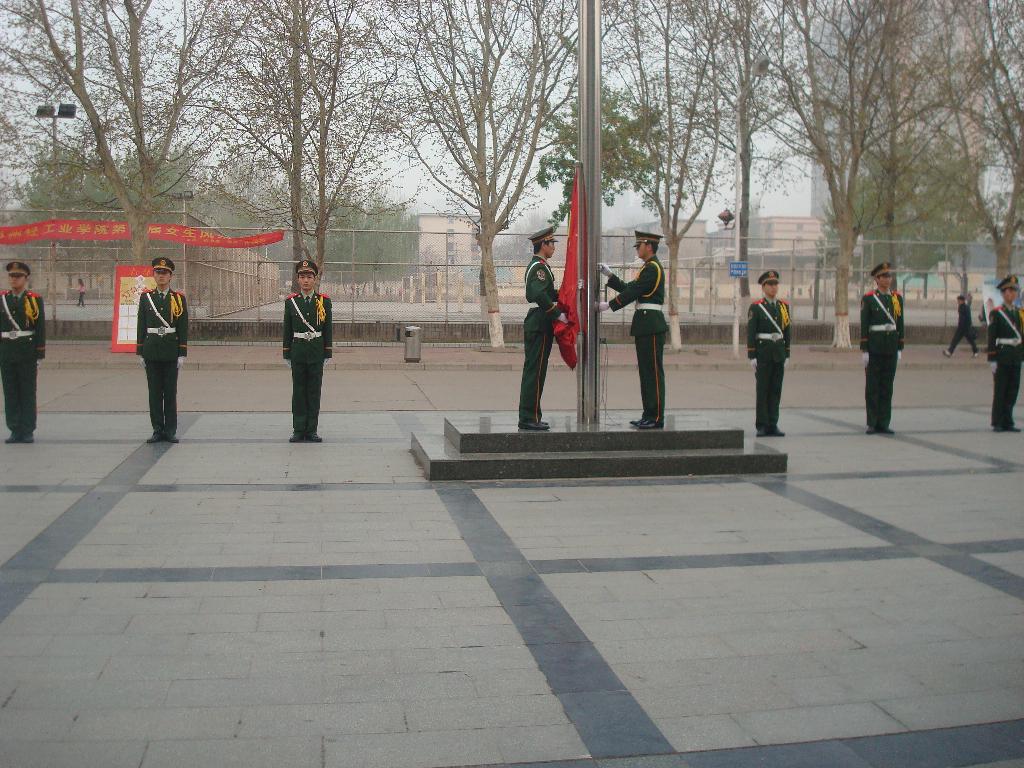 6:50,鲜艳的五星红旗在雄壮的国歌声中缓缓的升起,全体人员向国旗行注目礼,庄严的升旗仪式激起了每个人对祖国的无比热爱和满腔自豪。